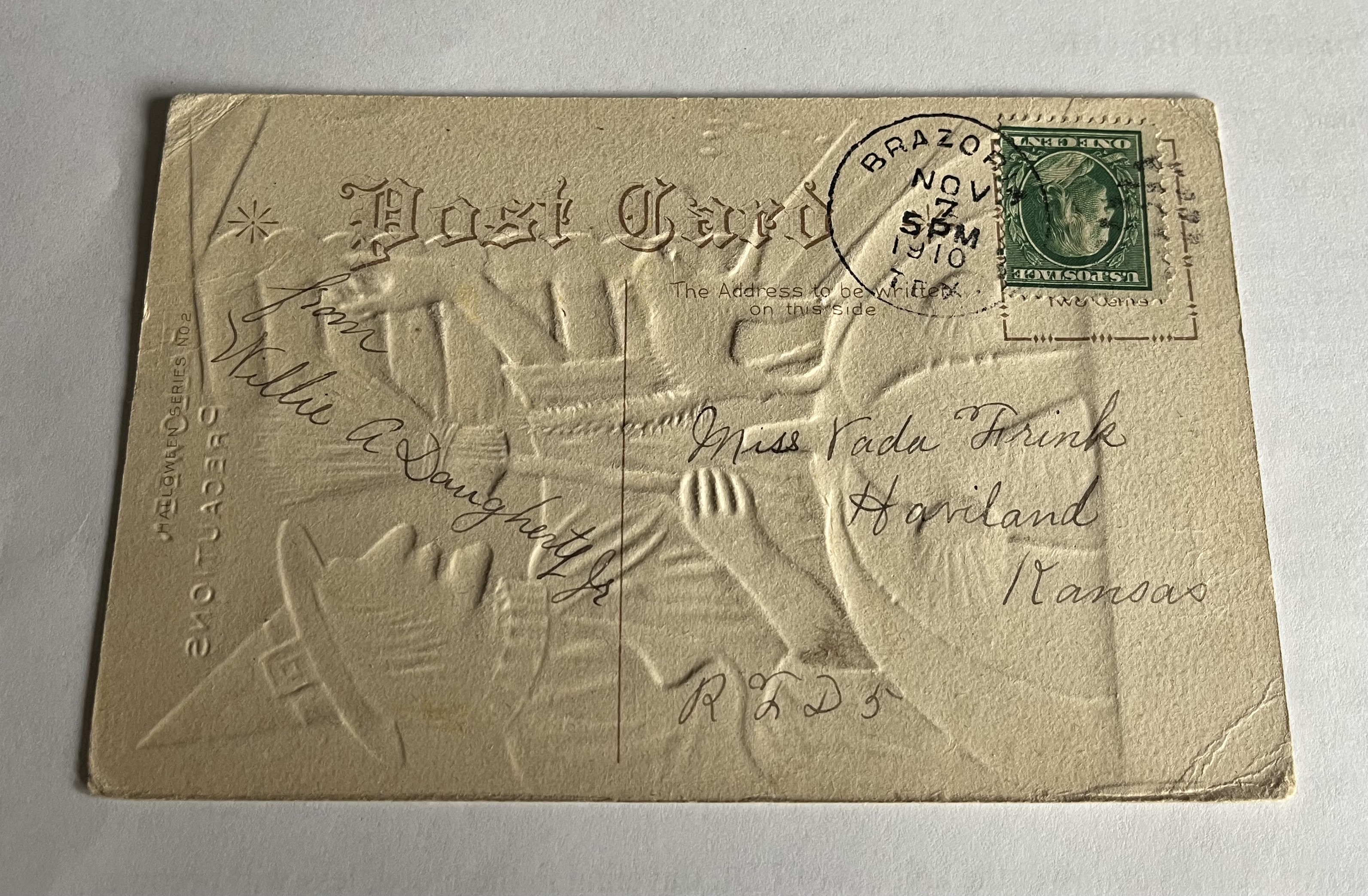 Item History: This postcard was passed down from the owner's grandmother, Vada, who received it in 1910, adding a personal narrative to its historical significance.