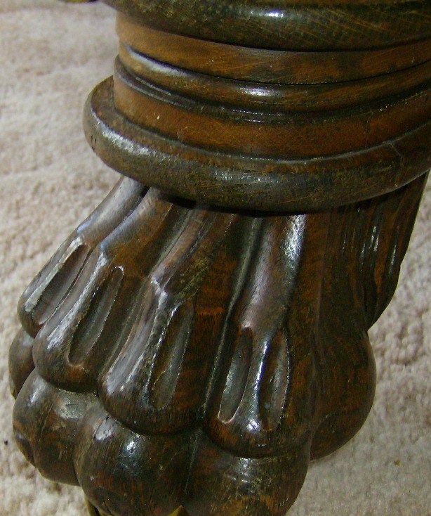 beautiful huge 6" lion paws, shells, flowers,6 legs, very detailed, lots of scrolling, beautiful thick wood, 50x50 square with 2 leaves, etc...