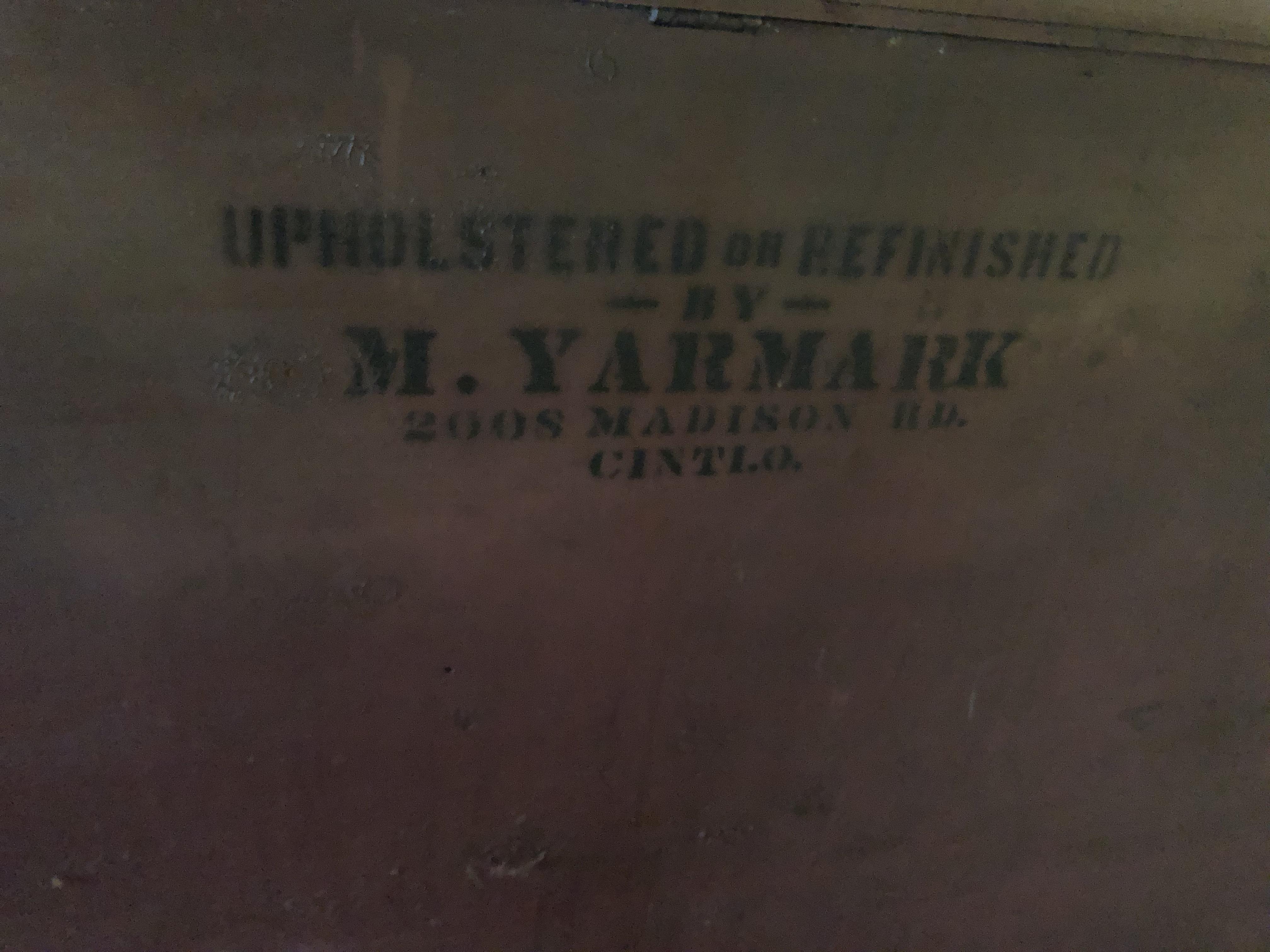 I was told that this was from around the 1910s, but I’m not sure. The top opens like a chest and there are two drawers on the bottom. It is cedar. The second picture shows the company that refinished it. They were a company in Cincinnati, OH. Any help would be appreciated.