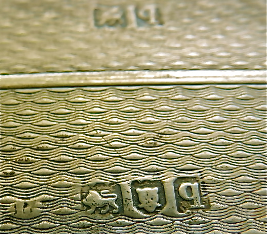I received info from The Goldsmith Company in London the date 1911,assayed in London and Engine turned,.925 sterling silver.I have not polished.