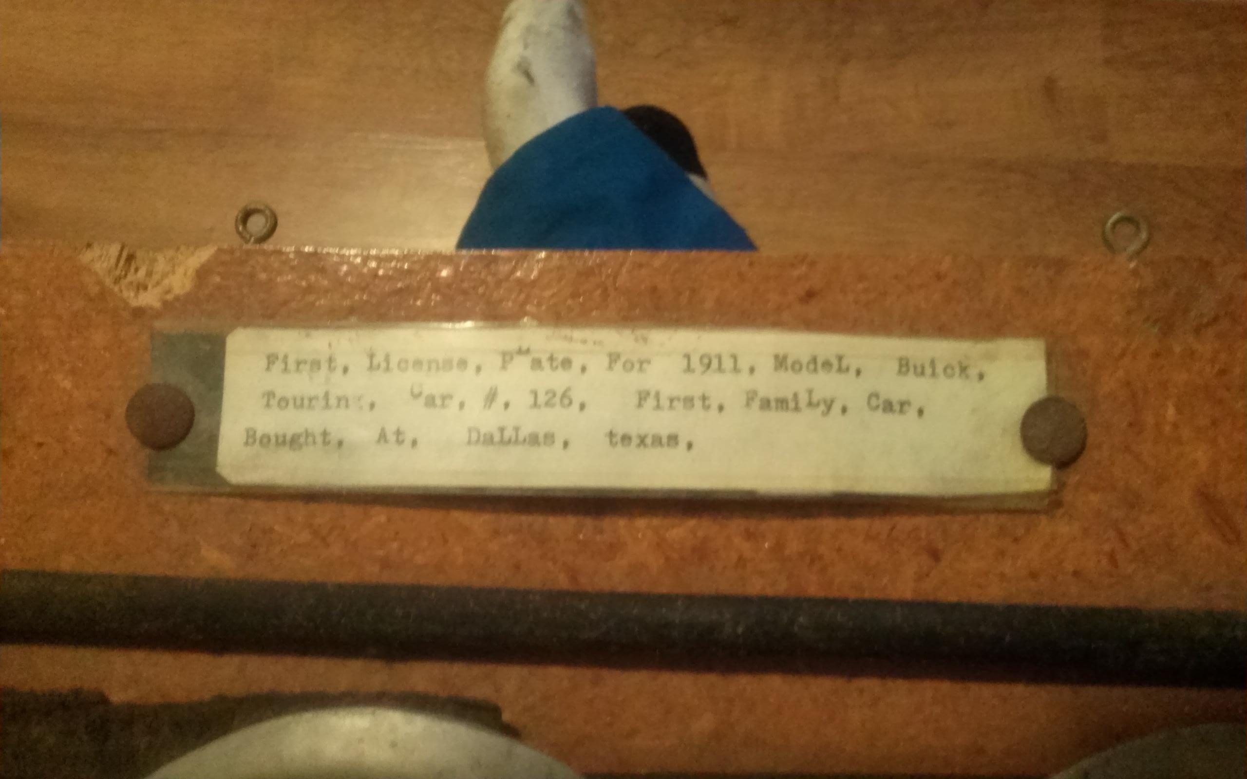 1911 tx Licences plate with picture of car and last registration from 1917.