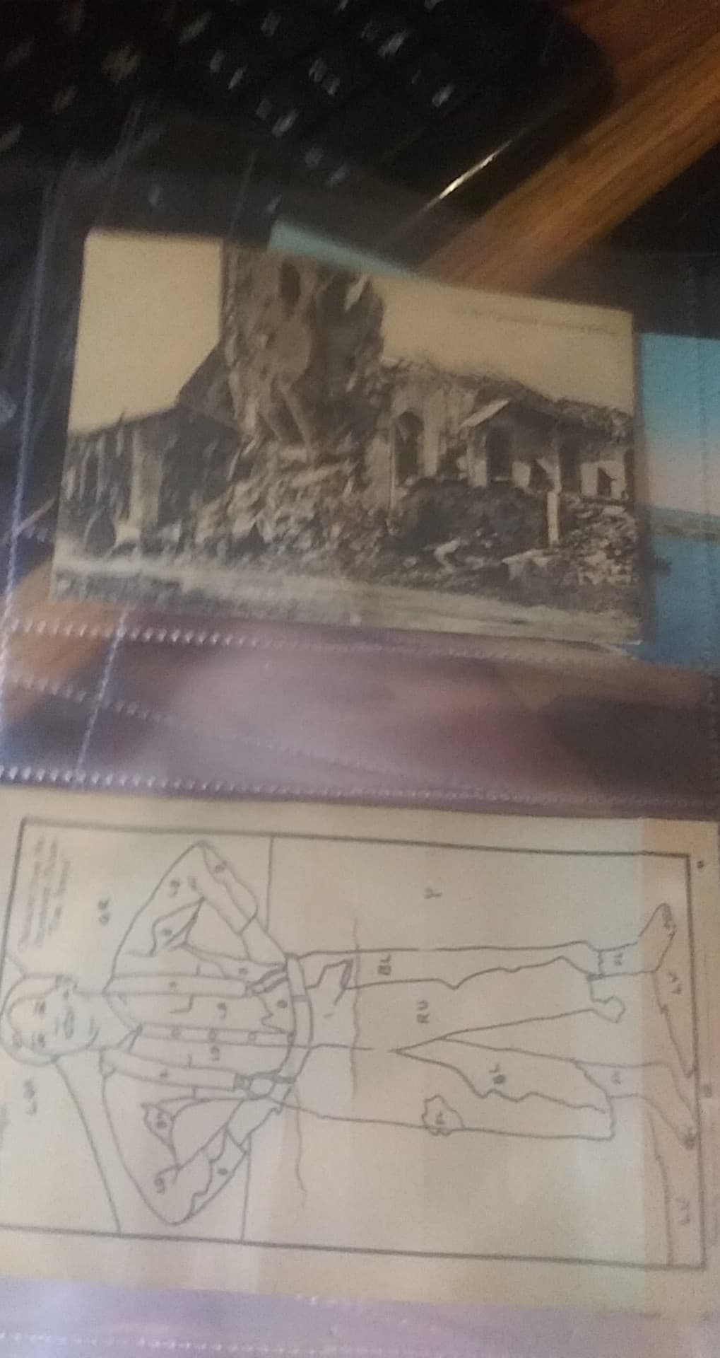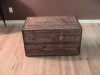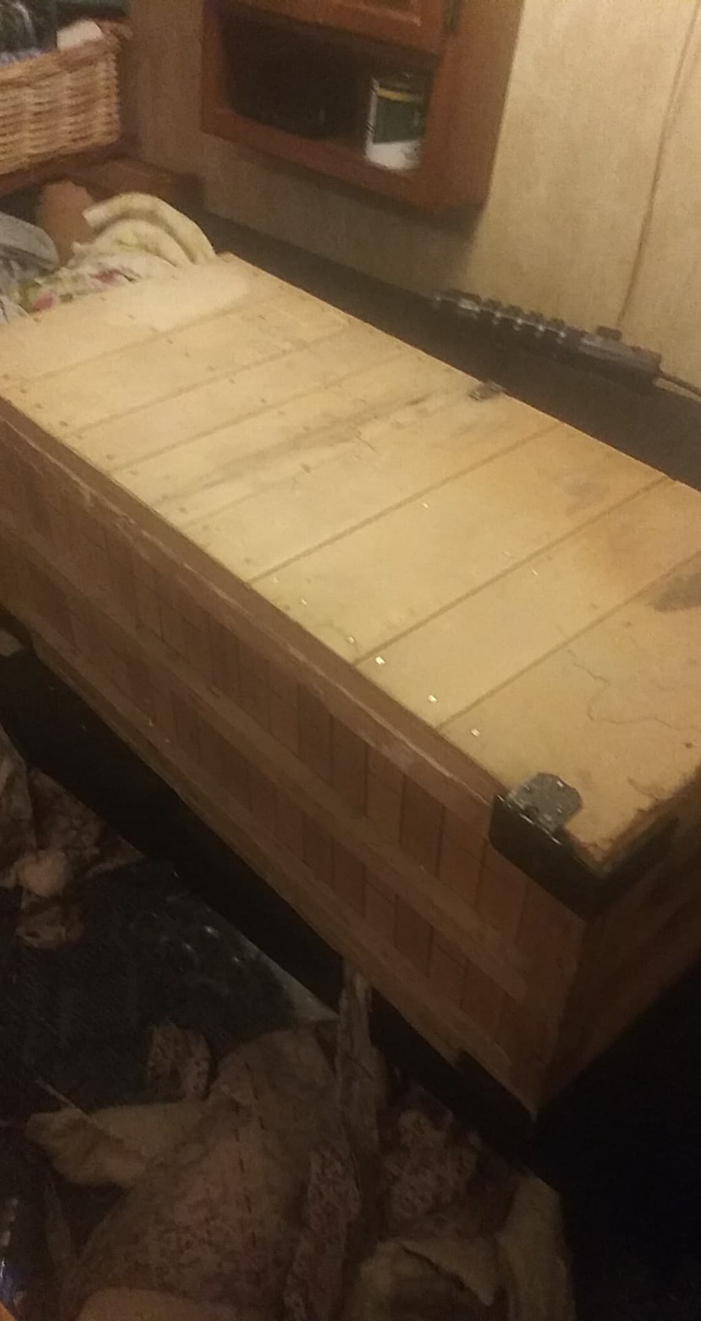 I found this under some really unattractive upholstry. There is a date on one of the corner guard that is dated november 1911 on it. I took the upholstry off of it and there was this underneath. I also found some post cards from 1917 and a really ugly toy guy that I cant find online anywhere. I know nothing else about it, let alone where it came from or what it may be worth buy am very curious to find out. I found this at a thrift store. It had 2 layers of fabric and some old foam so the wood still looks in great shape. The inside had a bunch of plastered newspaper on it, and I kept the pieces of it because it does show that it is very old. If anyone knows what it is, or how much it could be worth that would be great! Thank you!