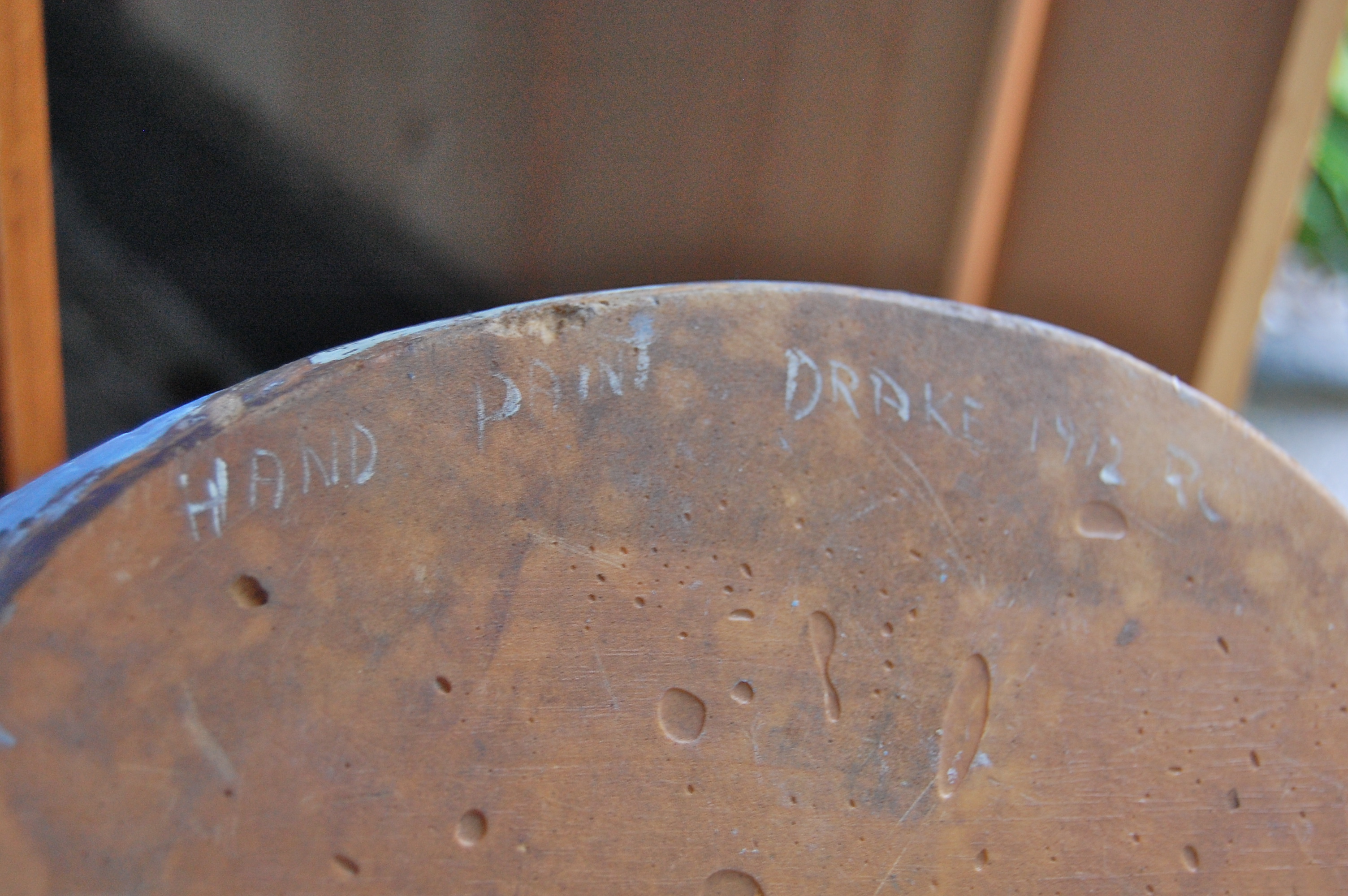 It says " hand paint Drake 1912 RC" I think its RC at the end... the c is a bit worn.