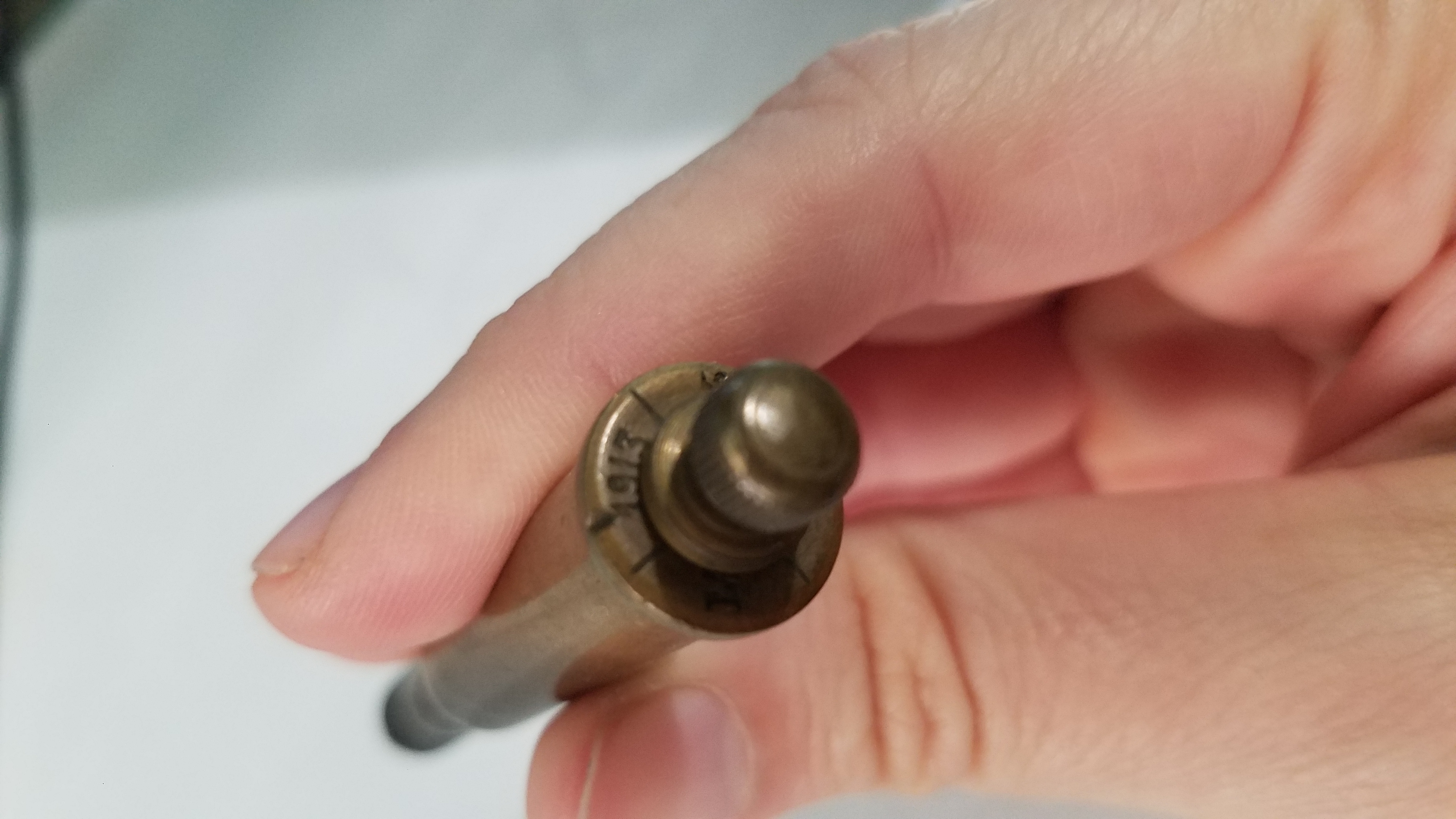 It is a lighter that appears to be bullet lighter made in 1913 since those numbers are engraved on the bottom along with the letters M and W. I can't make out the other number but appears to be 53.
