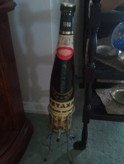 Was a gift from a friend of my father's. Looking for a price and estimate of the value. It has an attachmenet as it can be seen in the photo (showing the true age) - which is like a funnel that releases the brandy. It is a big bottle. Full untouched unopened.
