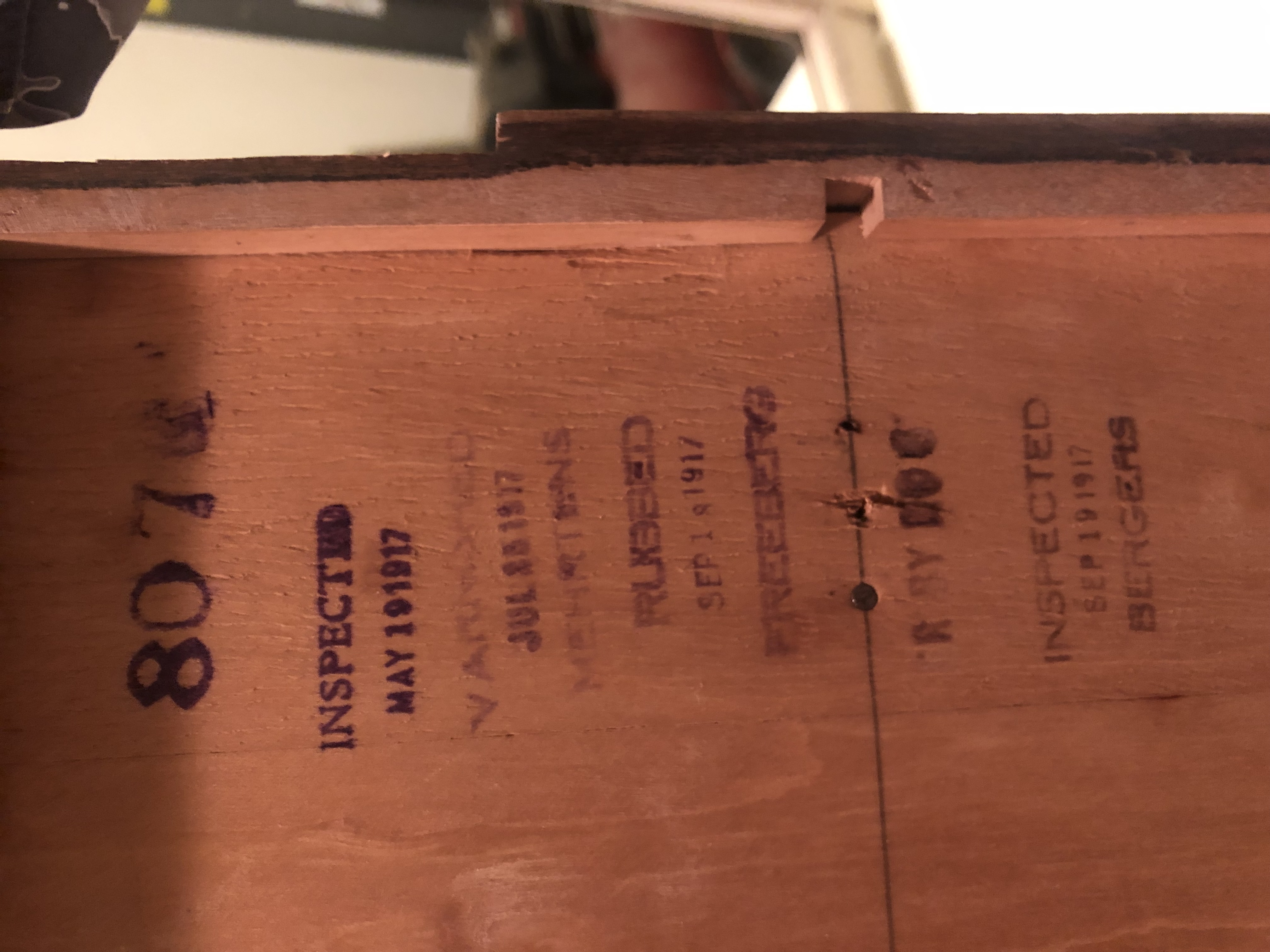 The Widdicomb Firniture Company. Antique sideboard with mirror. Stamped as built in 1917. White enameled finish with very ornate trim of bowls of fruit with ribbons connecting