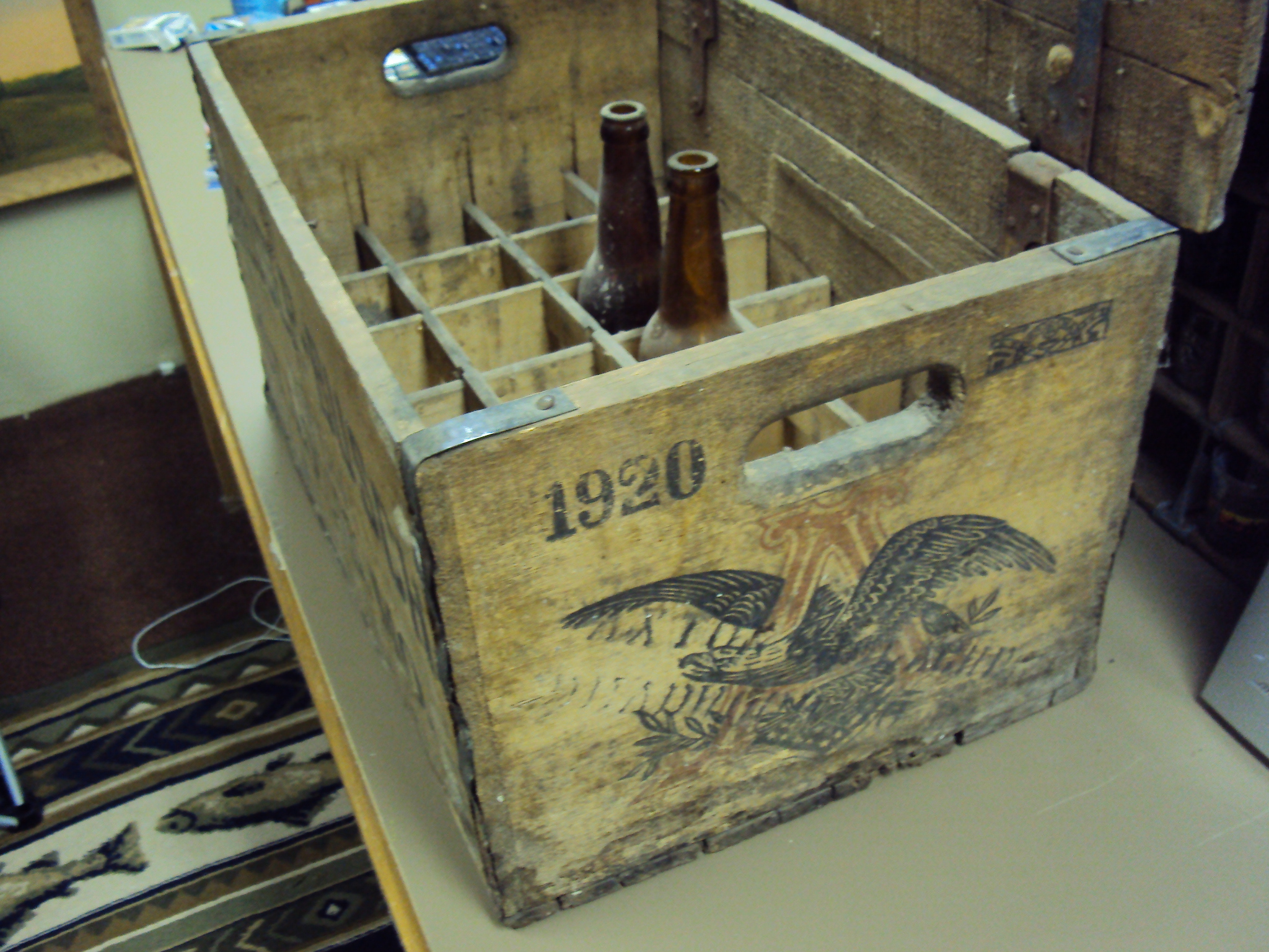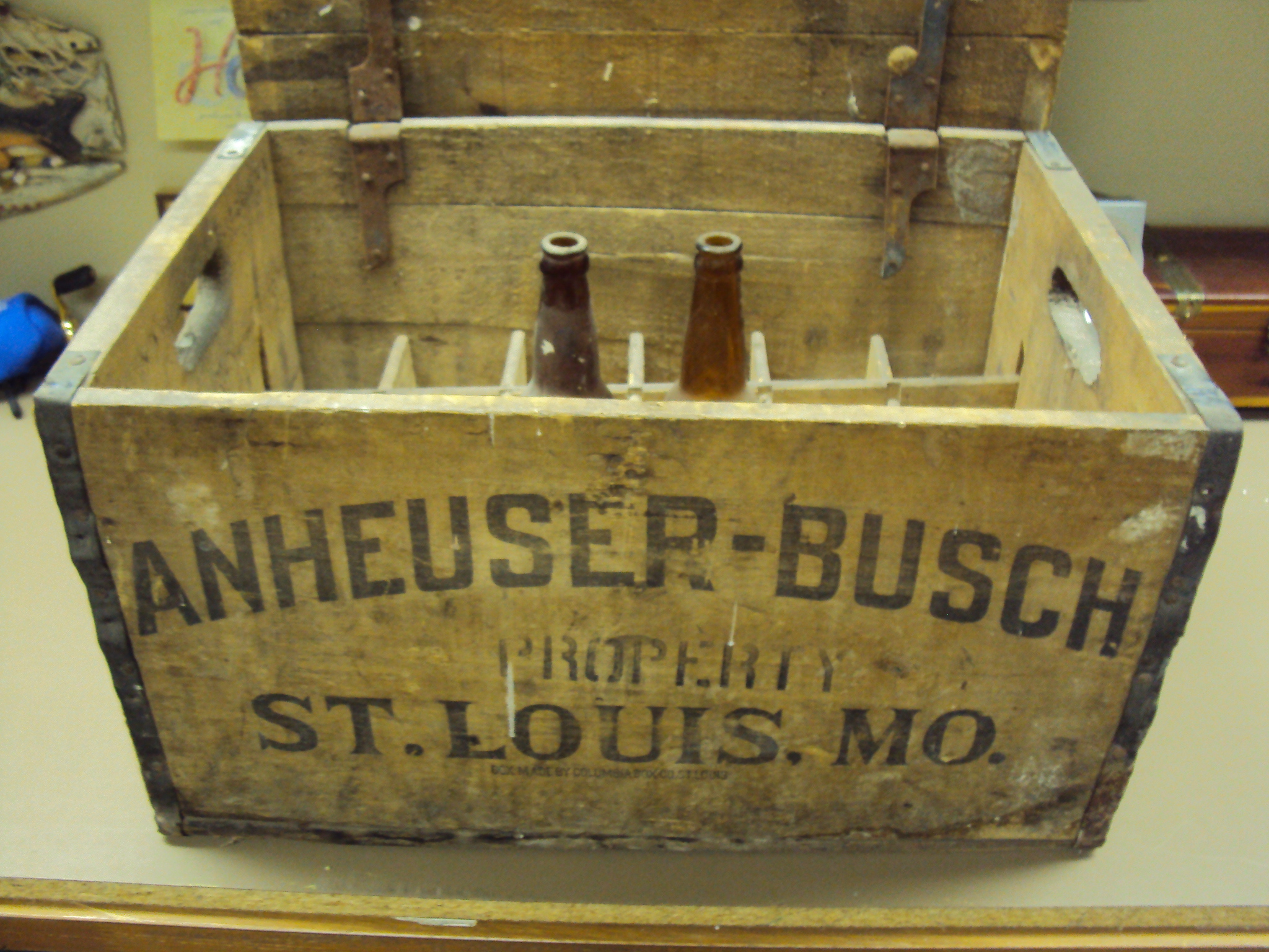 This is a 1920 (prohibition) Anheuser-Busch wood crate on the sides they have the A with eagle and 1920 along with a vendor stamp? on the front and back it states property Anheuser-Busch ST. LOUIS , MO