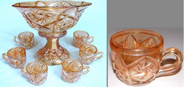 1920's US Glass/Indiana Glass Punchbowl Set (bowl, base, 6 cups) ...excellent condition, no imperfections.