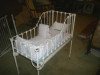 dark wood, has picture of boy and sheep, the panels on the side are about 3 inches apart. The picture is slightly faded, but still beatiful and vivid.