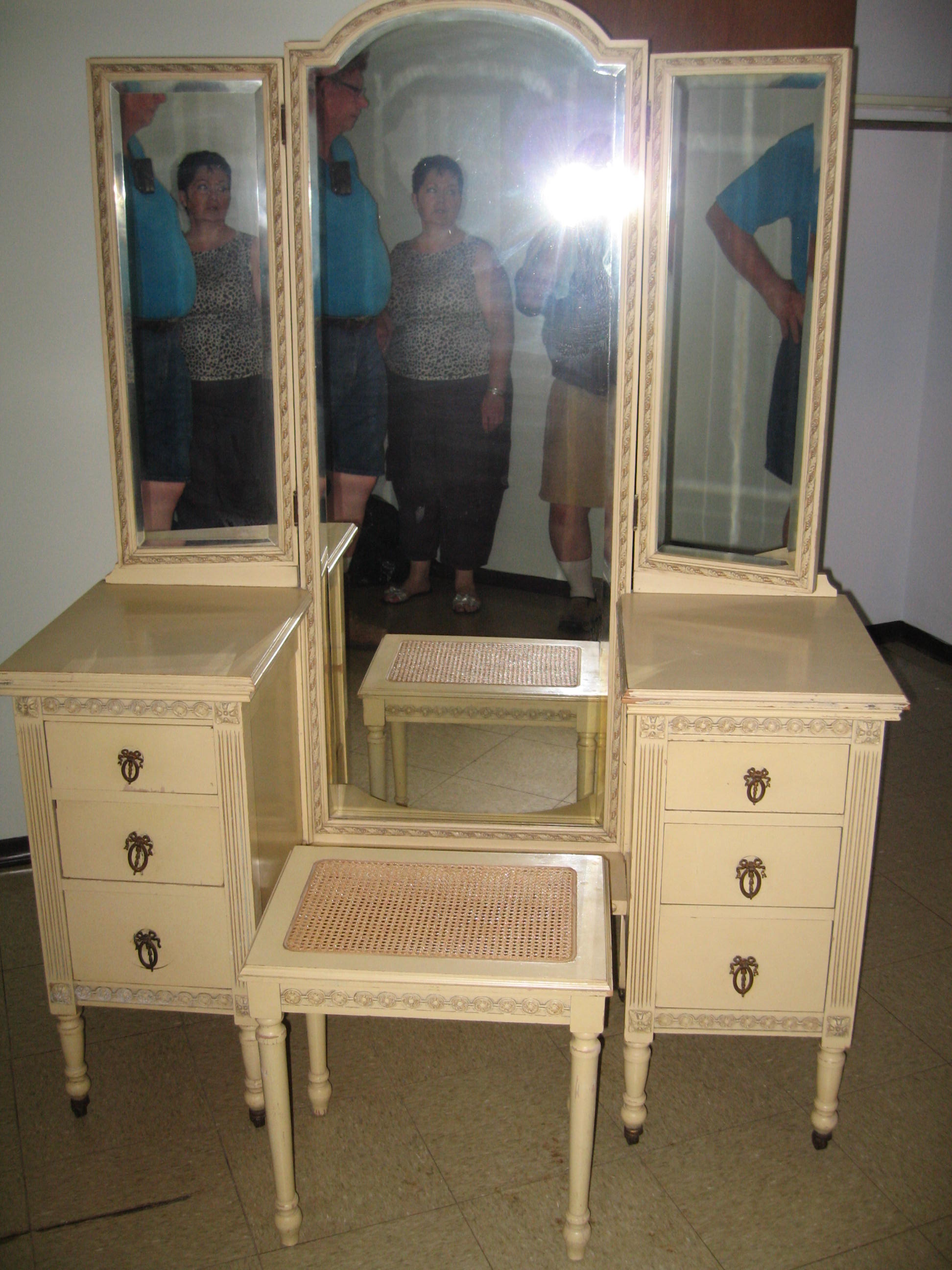 Multiple piece 1920's buttercream queen/full bedroom set w/some caning on a couple pieces. My parents had this set for about 50 years and received it second-hand from a friend who had bought it new in the 1920's after seeing it or a similar set featured in a movie. It has been described as a reproduction french/versailles(?) set. It originally also had a second bed that went with the set but was lost years ago. the hardware is original & so is the finish. There are definite wear & tear issues from being in continuous use since it was bought. I would like to find the value and history, please. Many thanks!