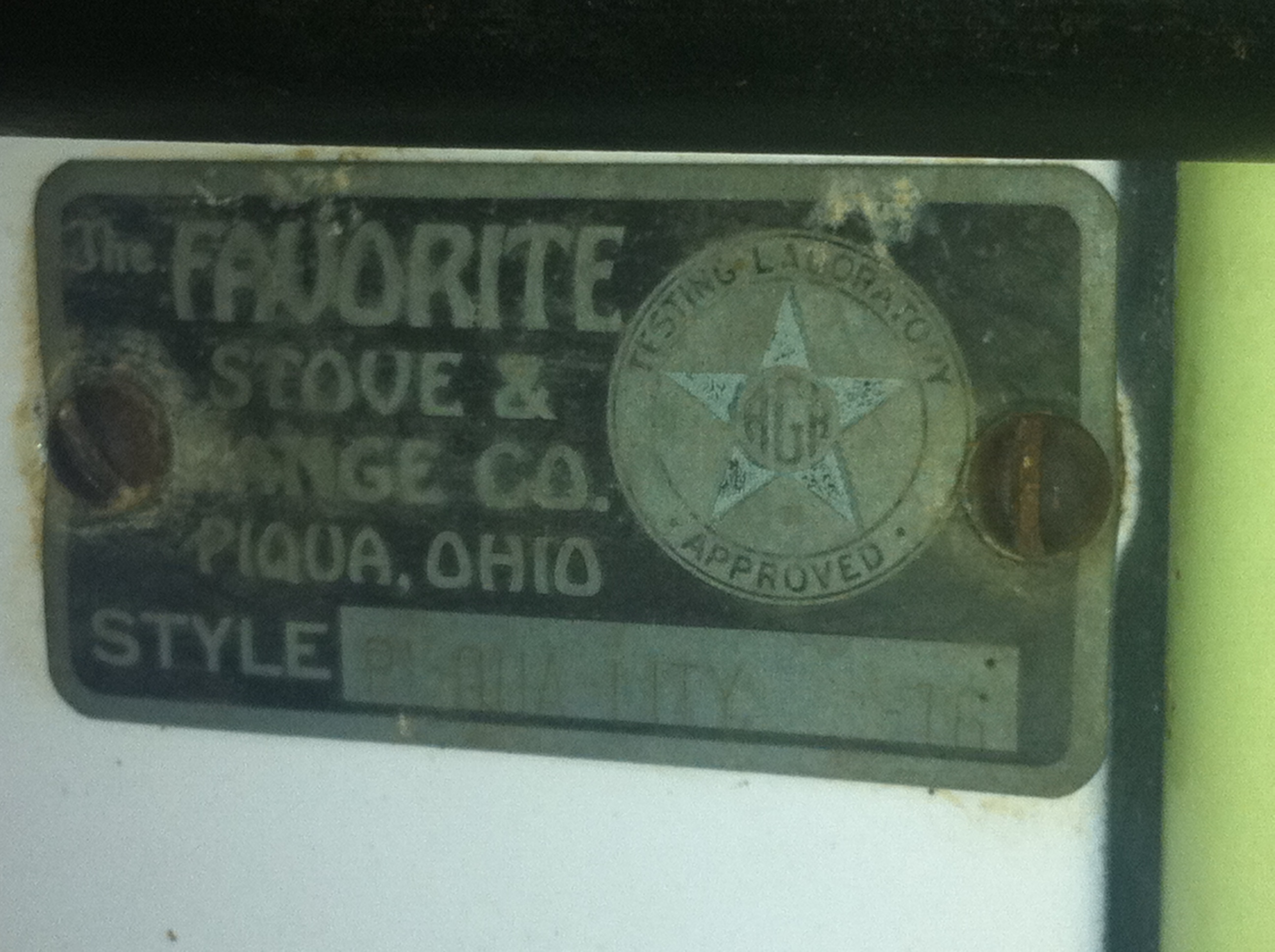 this is an antique stove made from a company that no longer exist and just sits in my dining room as decoration it is an old stove with white and green trim with patented parts on the legs branded in good condition and i believe have all the parts for it