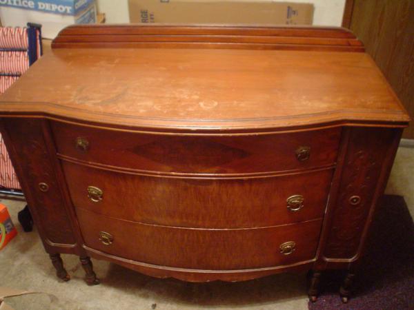 As seen in the photos, this is a 3 drawer vanity/dresser. possibly used to have a mirror, I don't know.