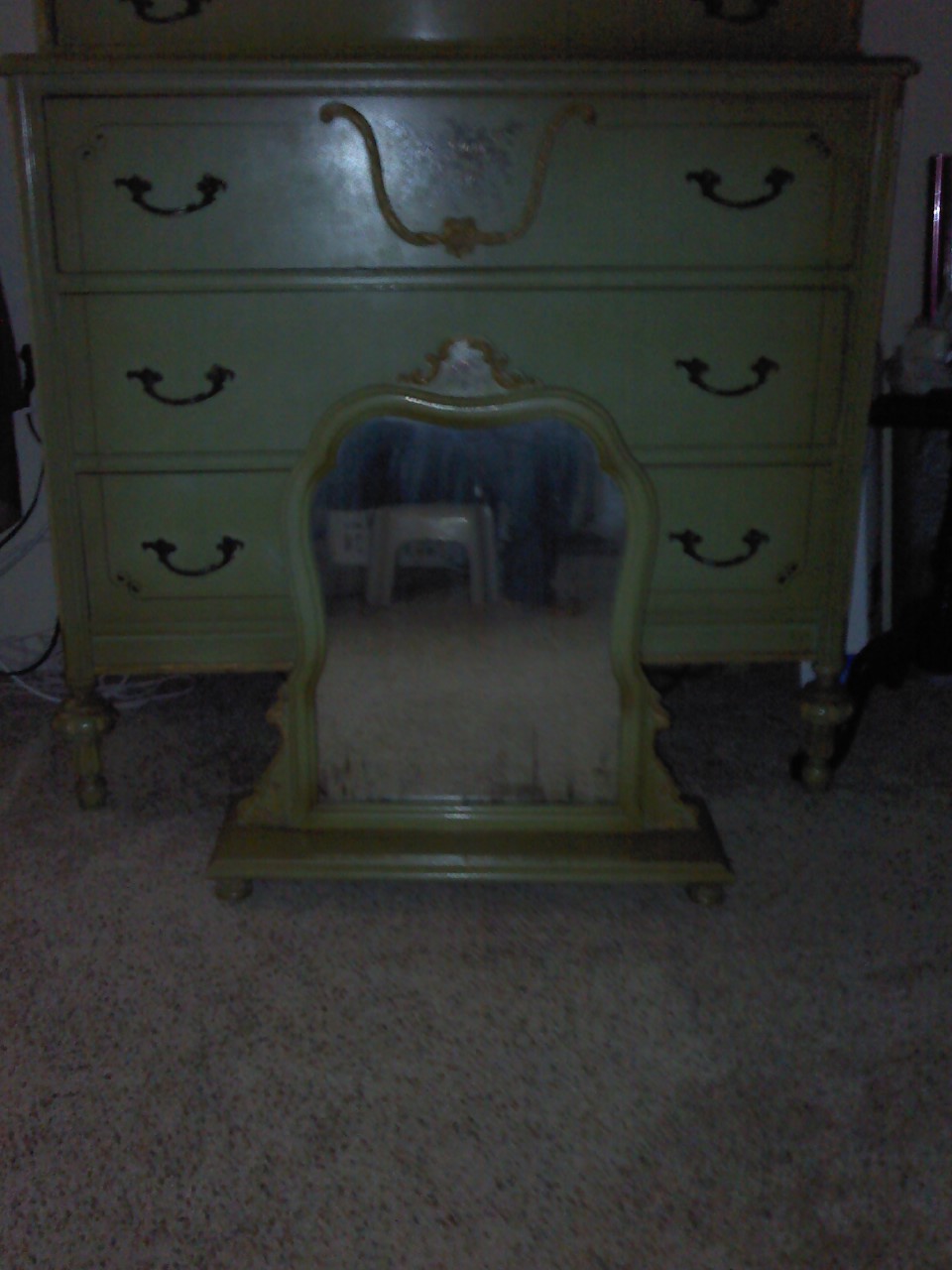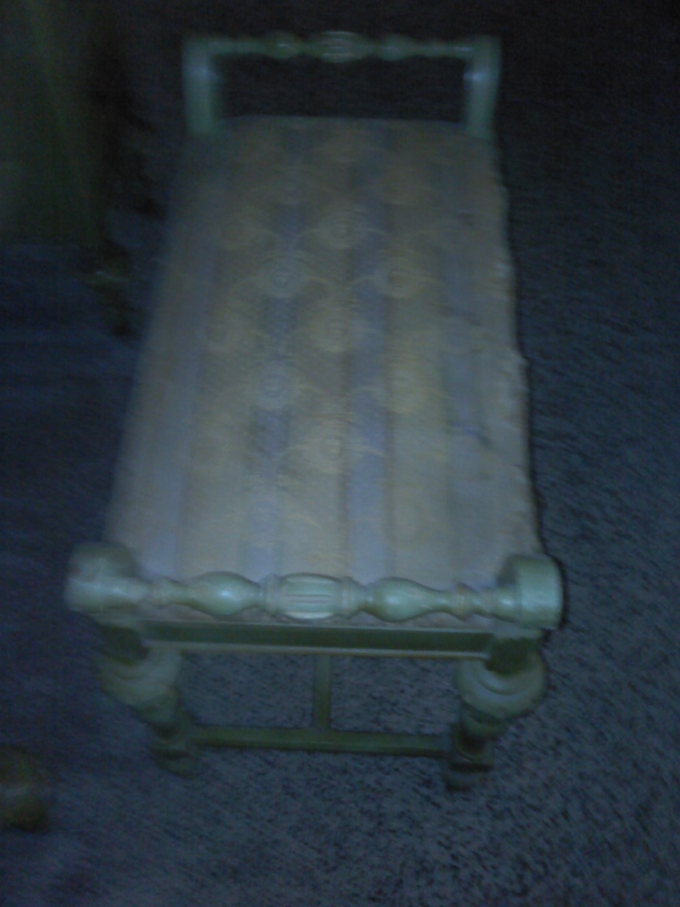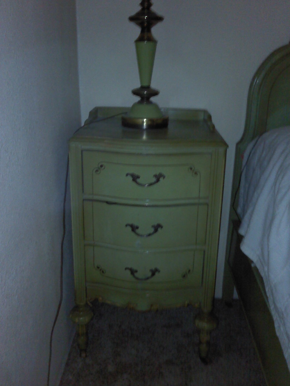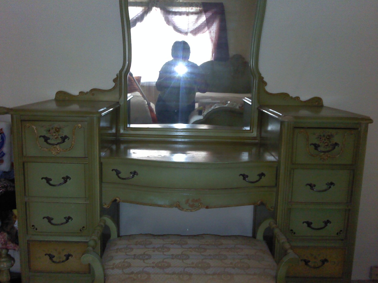 This is a French Hand Painted Bedrood Set from the 1920s. Most of the pieces are on excellent condition with exception of chair that needs to have the cushion restored. Originally this was an eight piece set. A bed, two nightstands, A Chair, Two Dressers( A Vanity Dresser and a Tall dresser), A Stool seat Chaise, And a mirror. One of the nightstands is mising.