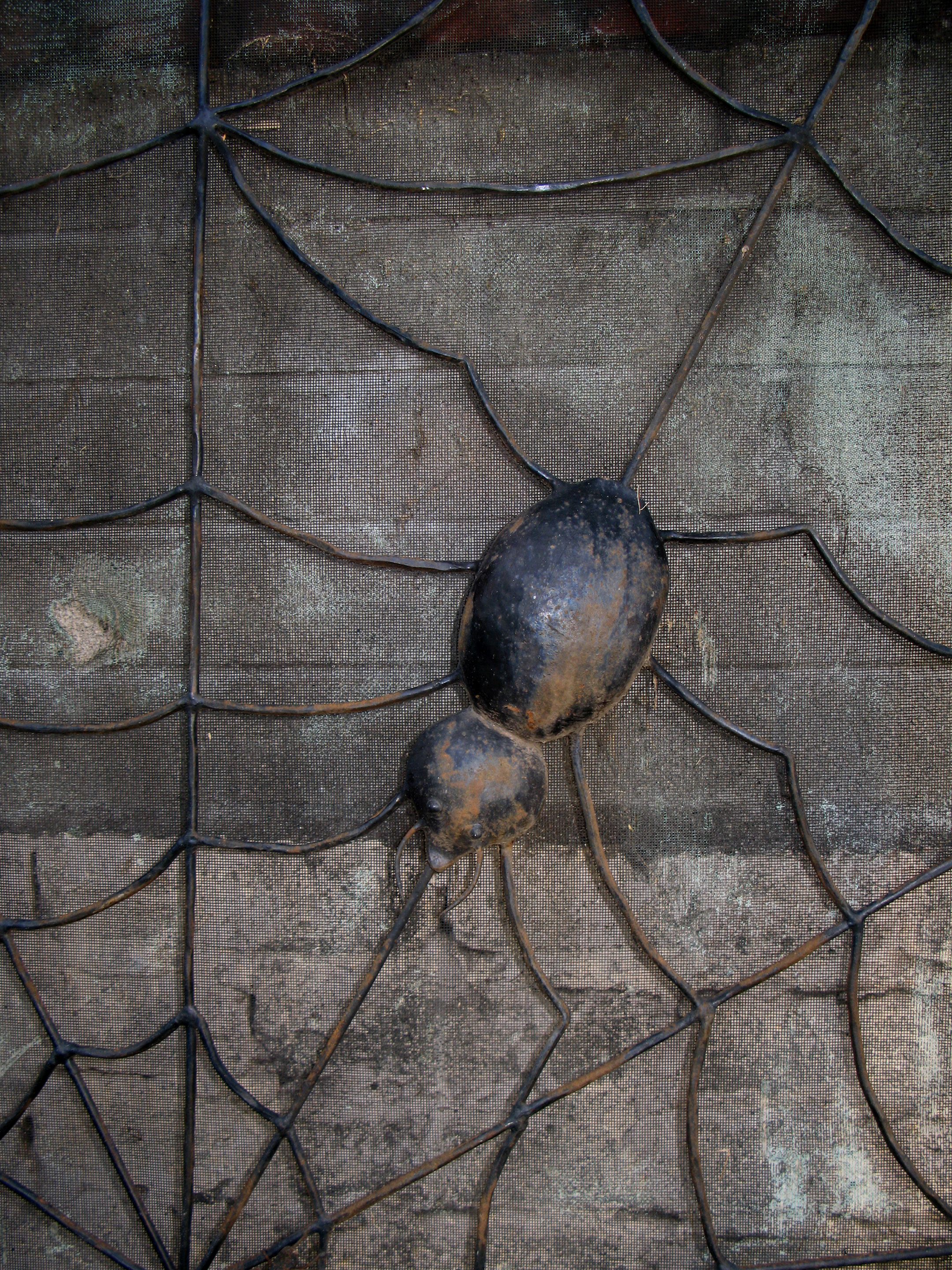 1920s Ironwork Front Door Screen with Web, Spider and Fly motif. Approx. 4'w x 7'h