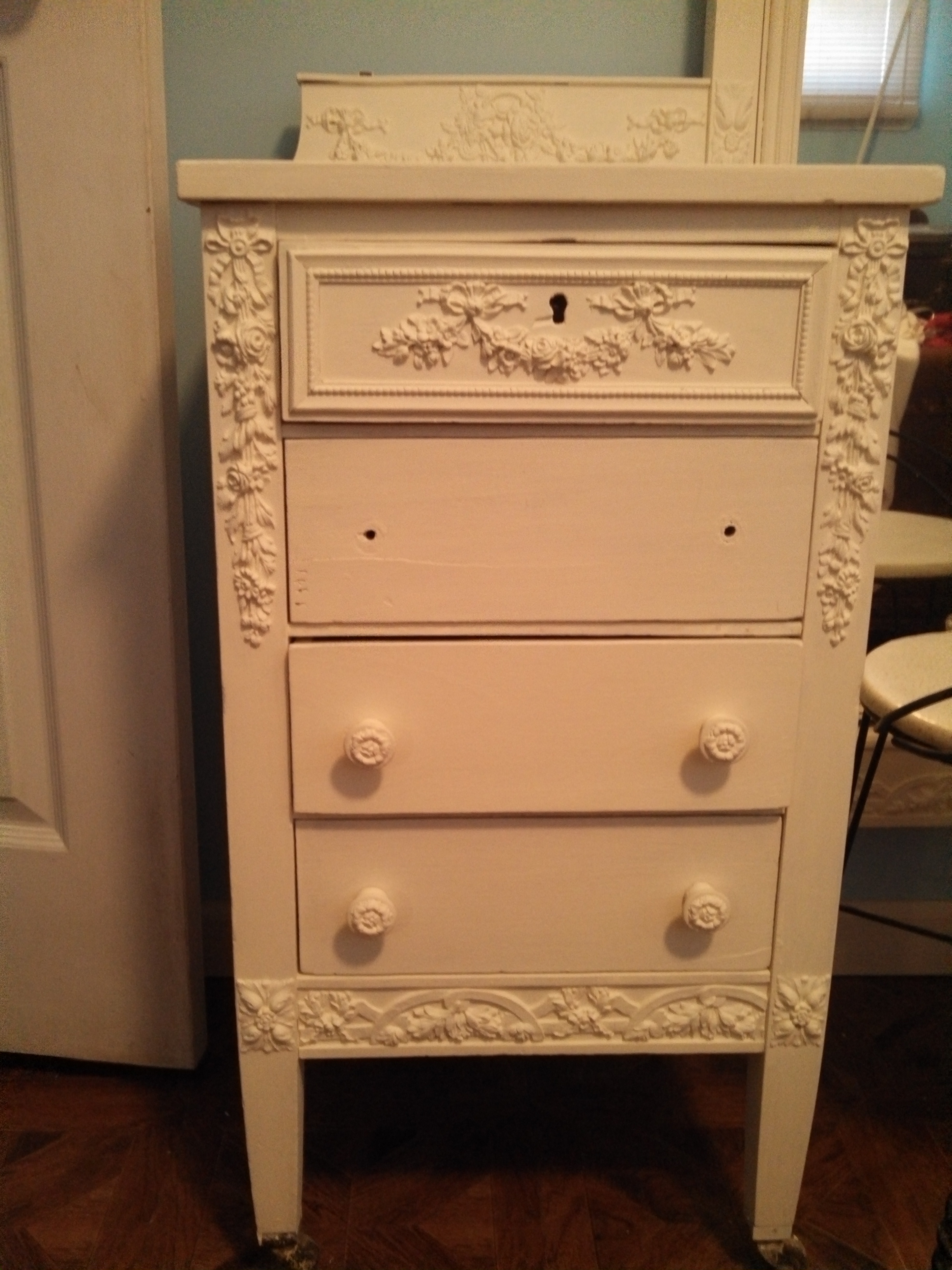 It's based on the Federal Revival Style popular during the 1920's through early 30's. The painted ones are a bit difficult to sell compared to those that have been refinished or have their original finish in good condition. At auction one like this might go for $75.00.