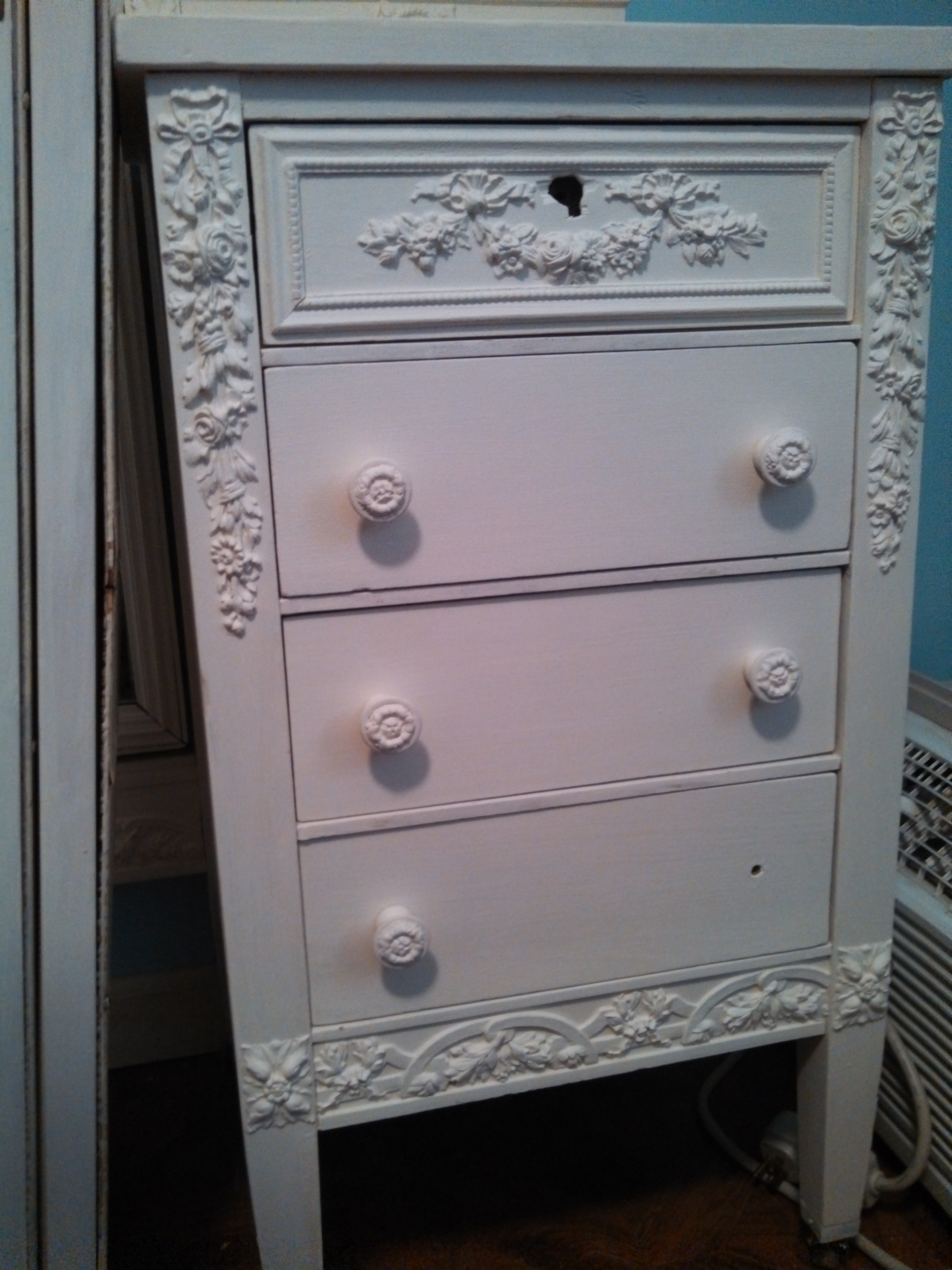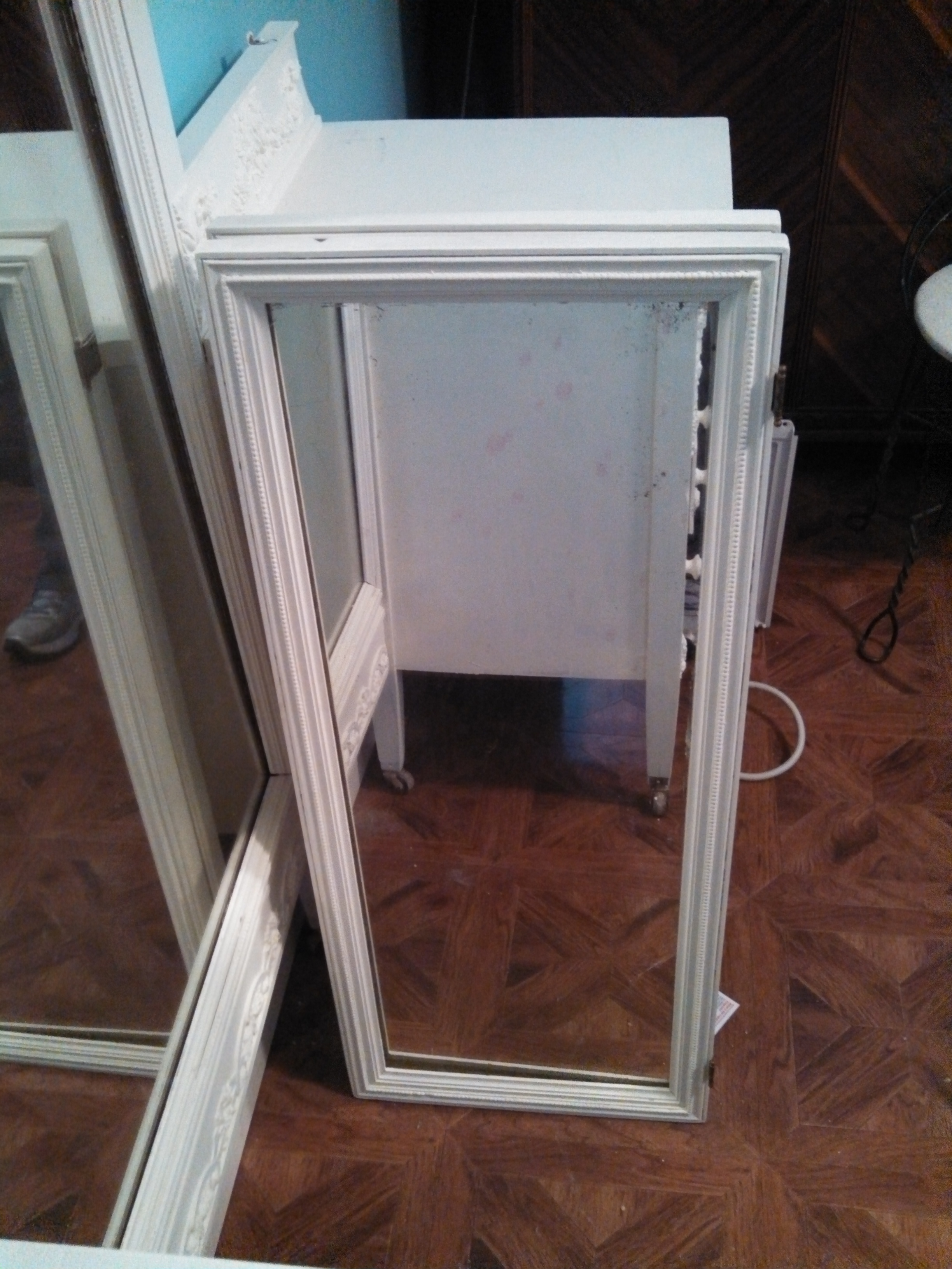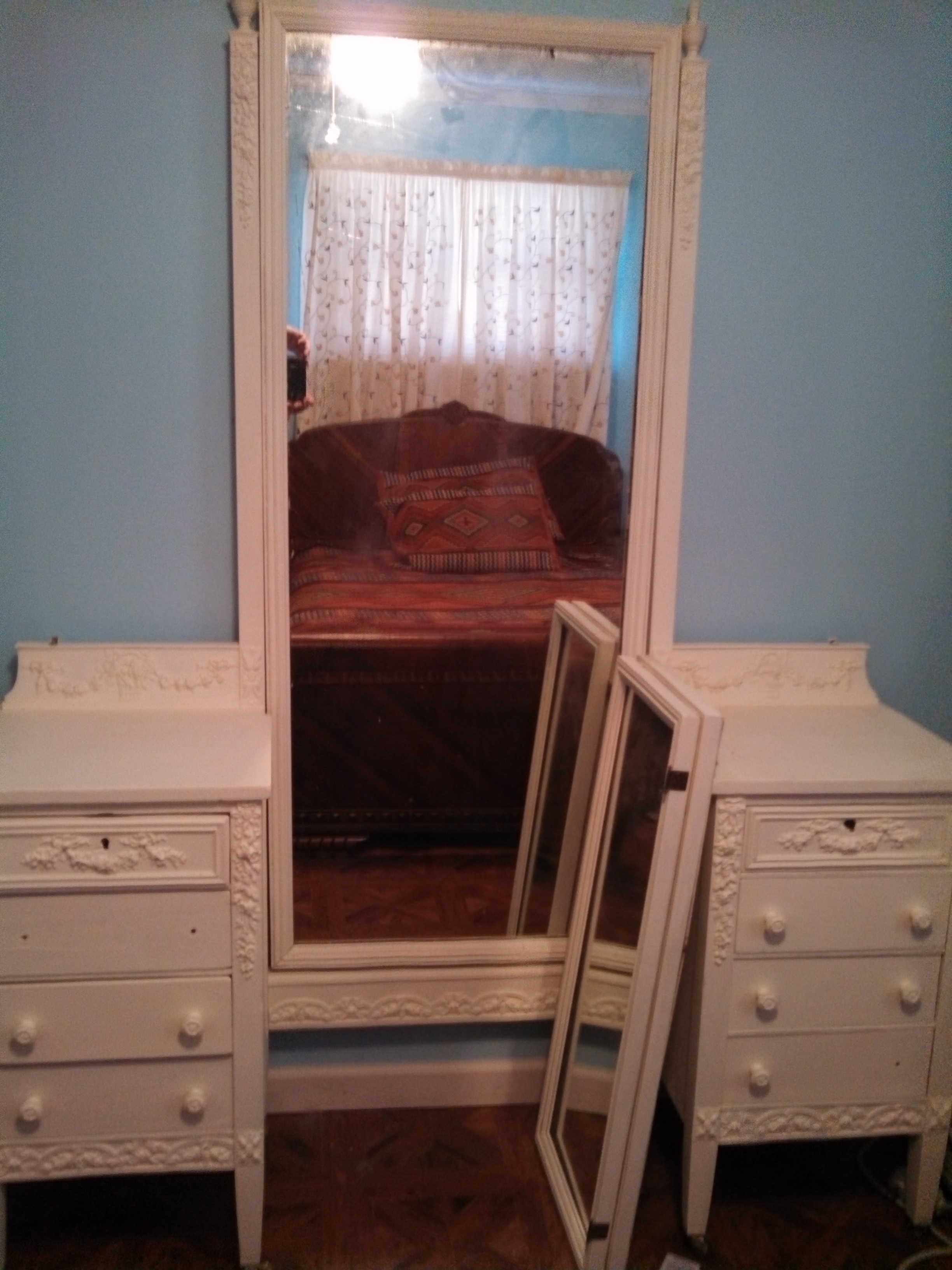 1920's vanity. In great condition. All 3 mirrors intact with beading intact also. Missing 1 drawer pull. Very nice piece!