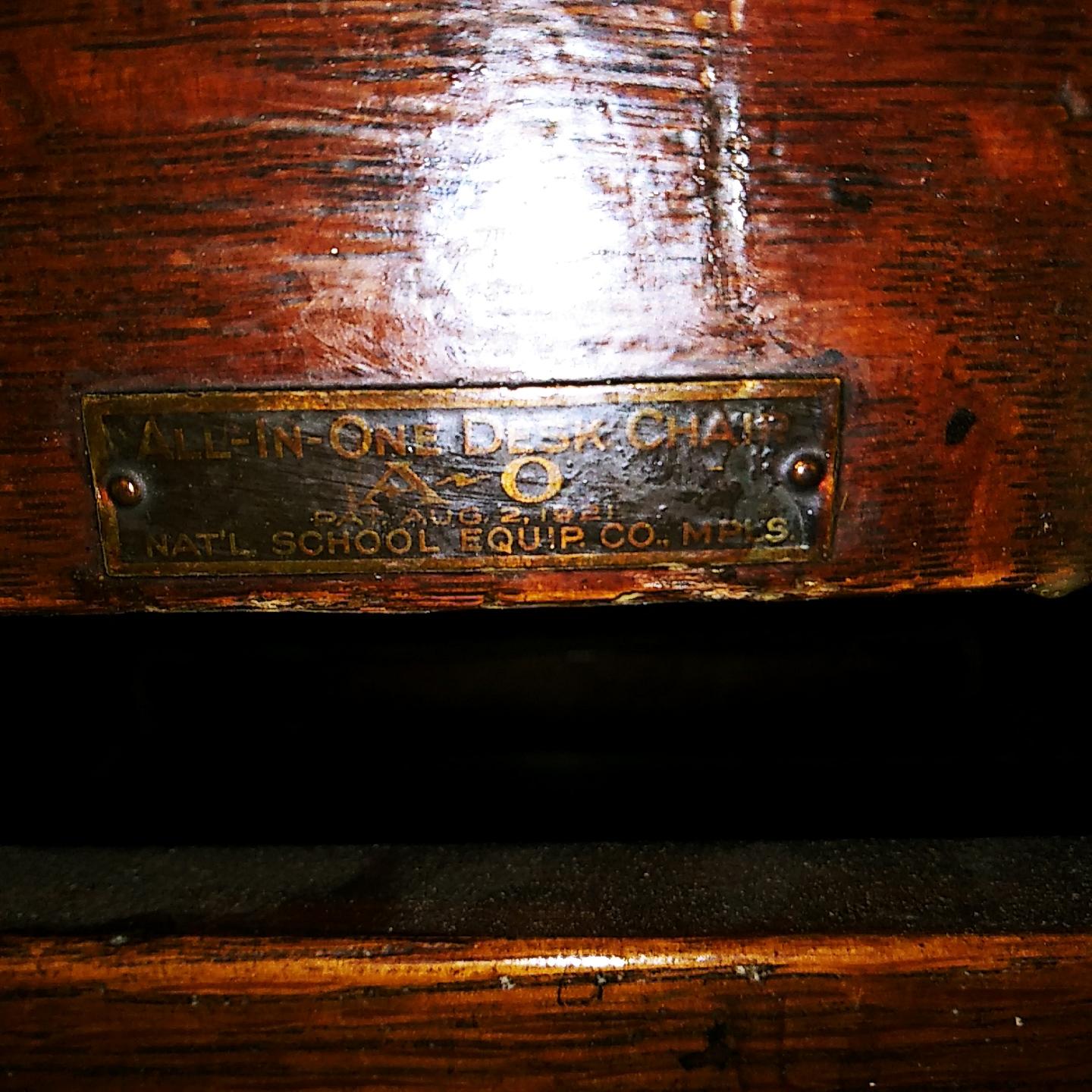 Distinguishing marks It has a plate with the words "all in one desk chair" pat. Aug, 2, 1921. See photo for the rest.