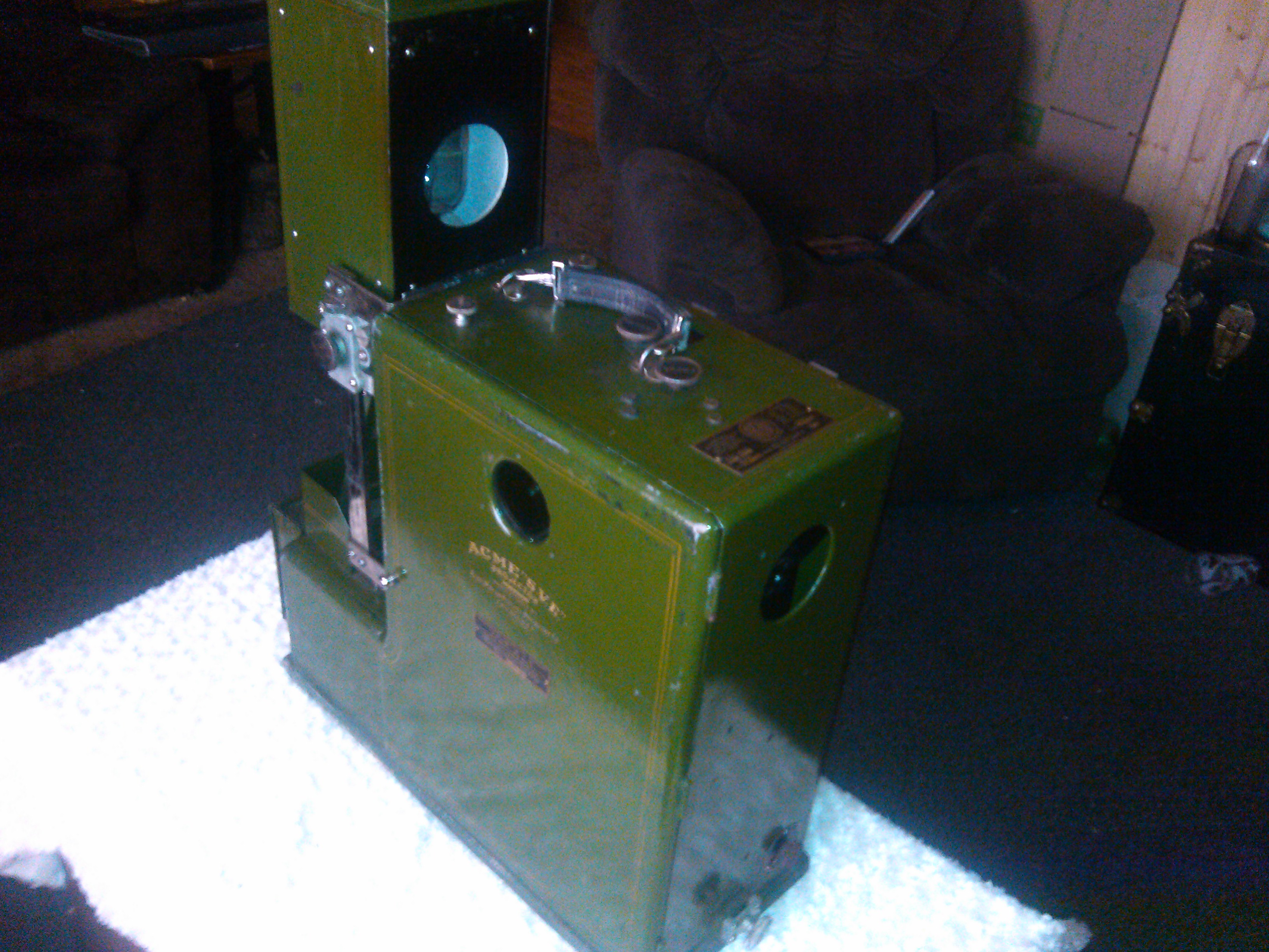 The fact that this has an electric motor and 400 foot reels means that it was a workhorse unit for indutrial applications, but probably not a motion picture theater projector. It was to show instructional or eductional films and short subjects in factories, union halls, YMCAs and schools that could afford such a machine and the rental of films to show on it. Possibly a traveling entity of some sort took this on tour to promote a cause or candidate, who knows? It was for 35mm silent films at a time when the amateur market of 16mm had yet to come about, and parts for this thing are of course near impossible to come by and would have to machined if anything ever needed service. It either works or it doesnt, and that alone would make a big difference in the price it would go for. It's doubtful the proper lamp can be found, but that could be changed if you were clever and such. Something of a white elephant, I'd say. if you had silent films to show on it, you wouldn't want to risk damaging them in such an unknown and untested unit, that my scratch the film. 1922-25 were probably the only years it was made, and the company did not prosper.