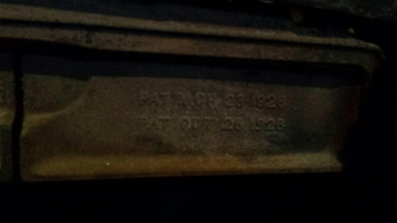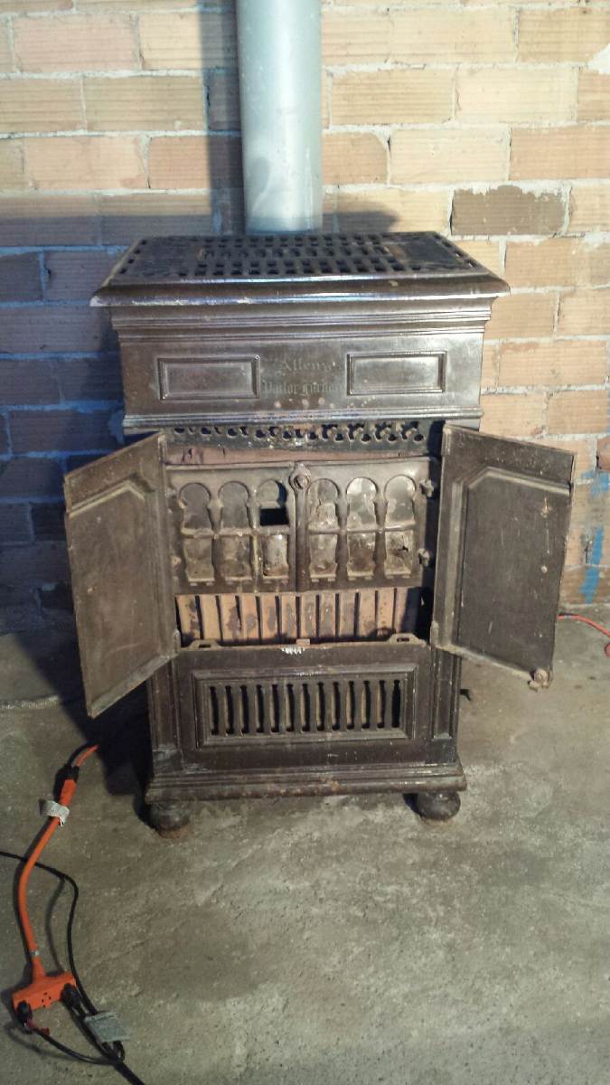 This 1926 Allen's Parlor Furnace was manufactured in Nashville, Tennessee and that proof is evident on the back side. It was able to use coal in the beginning and then later wood. When the 2nd set of doors is opened, more detail is present. The pictures don't convey it properly, but on the left side it says "600-HD" and on the right side "PAT OCT 26 1926".