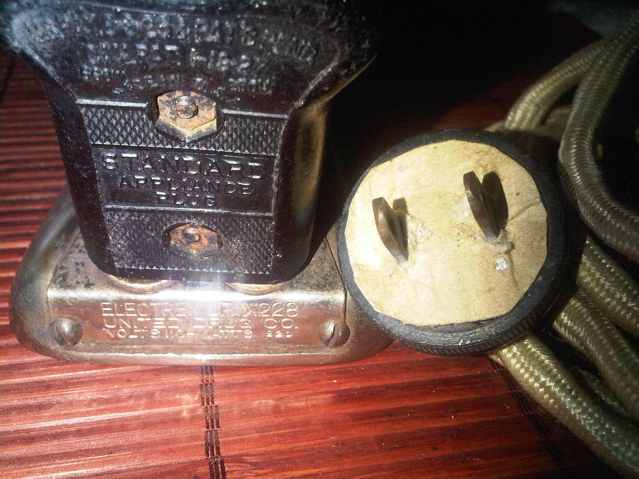 on the back of the iron is stamped: electrex jr. x228 united drug co. volts 110- watts
