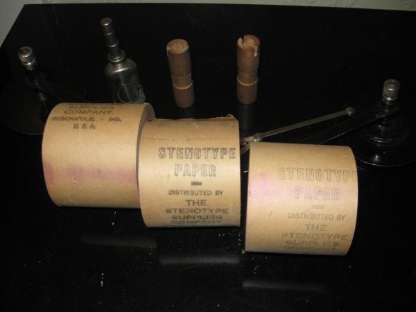 1926 Stenotype Company Stenograph Machine, original case and accessories, 3 rolls of paper