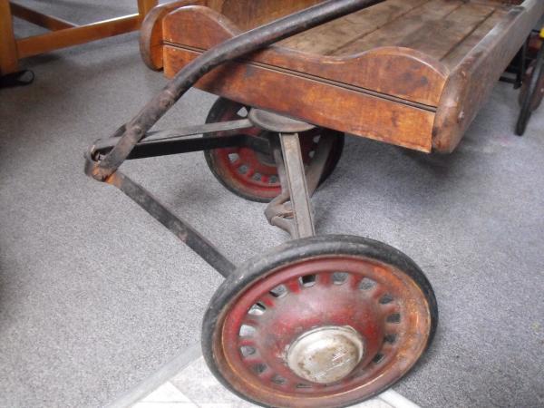 I know very little about this item. It was discovered in my basement about 25yrs ago along with a tricycle that I beleive was dated around the 1930's. The wagon is in good condition. Some water stains on the interior but other then that just normal aging. Full working condition and all hardware seems to be original.