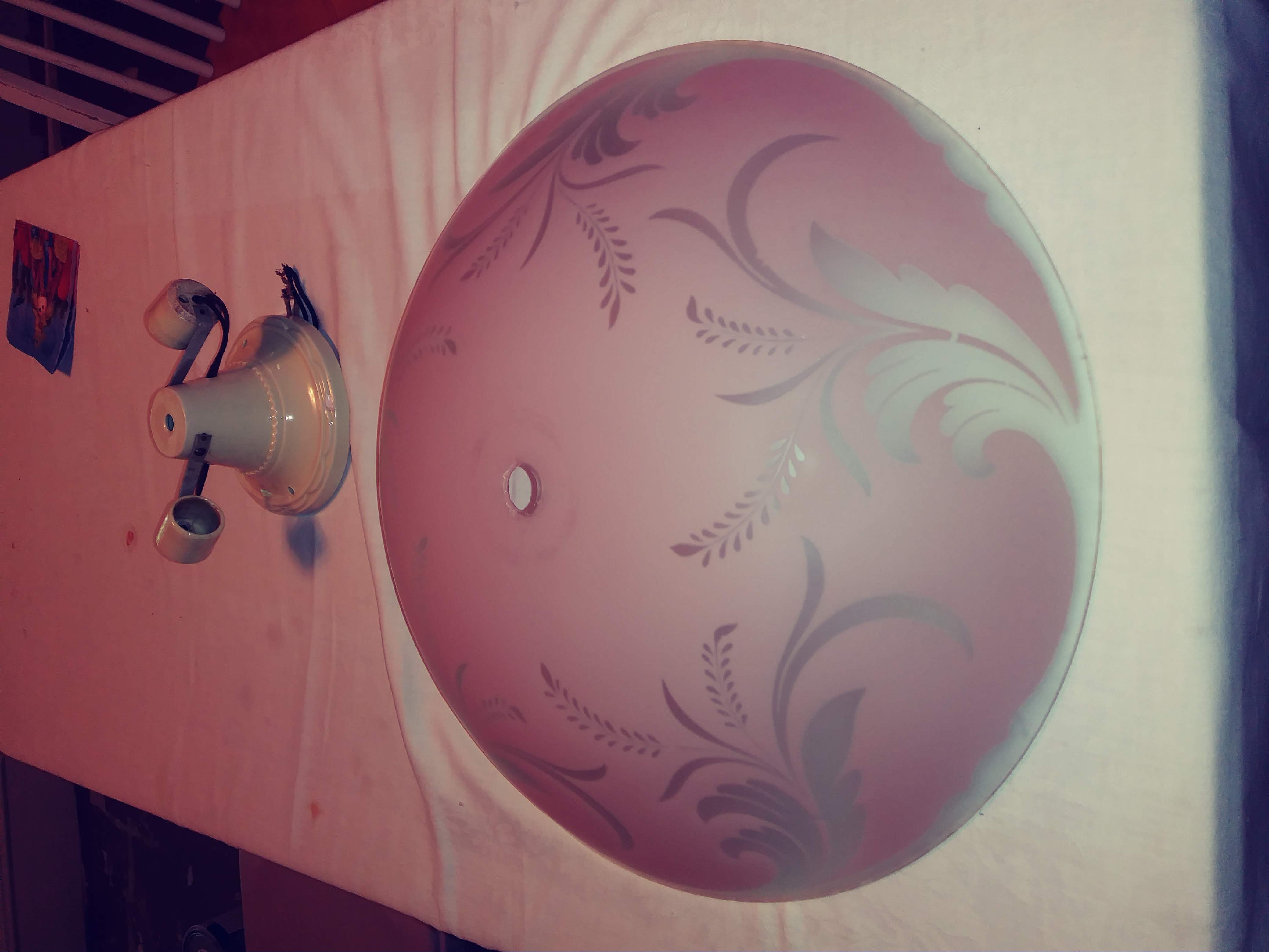 1- 16 inch Pink Art Deco? shade with porcelain base