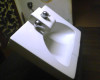 flat sink top, with ovoid lever handles mounted on the sides of the spout. The basin was a