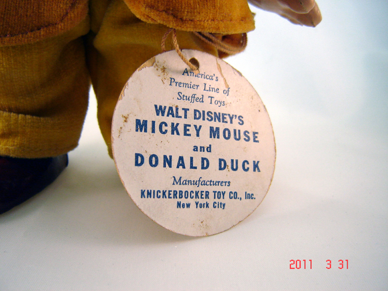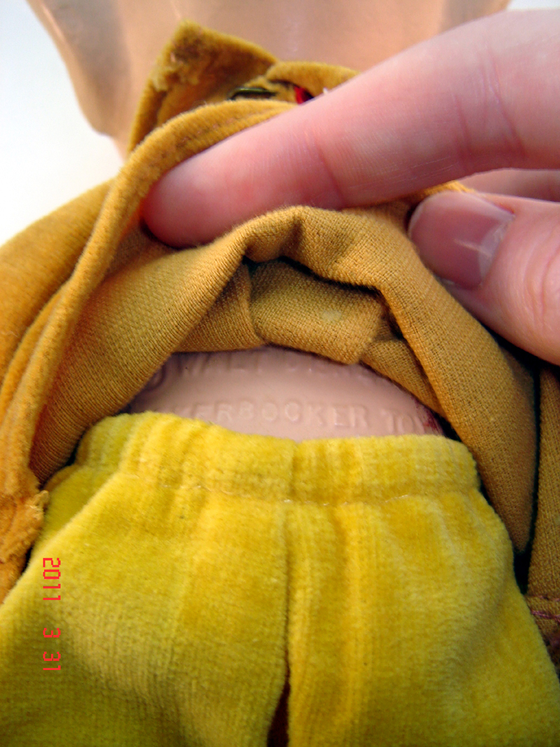 Distinguishing marks Knickerbocker and Disney stamp on backside of doll