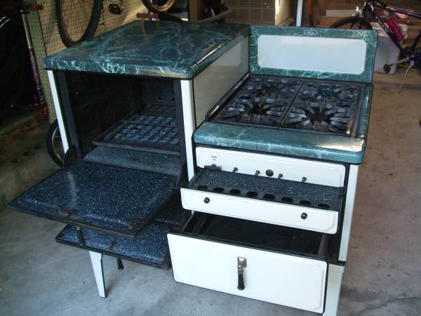 Distinguishing marks White Star brand, 4 burner stove, green marble look finish top