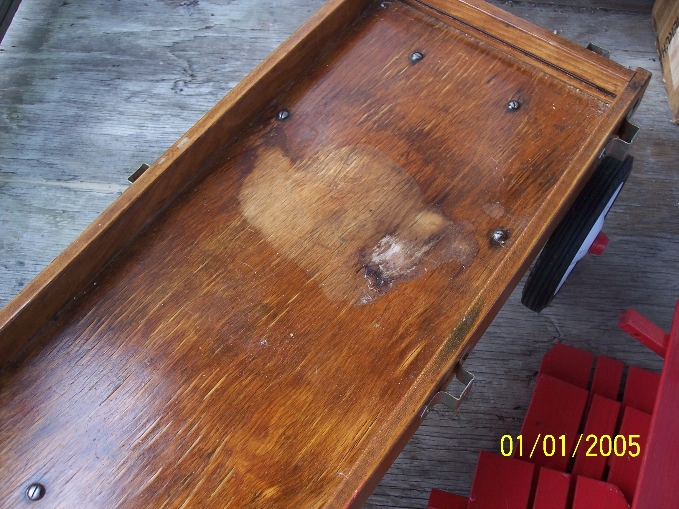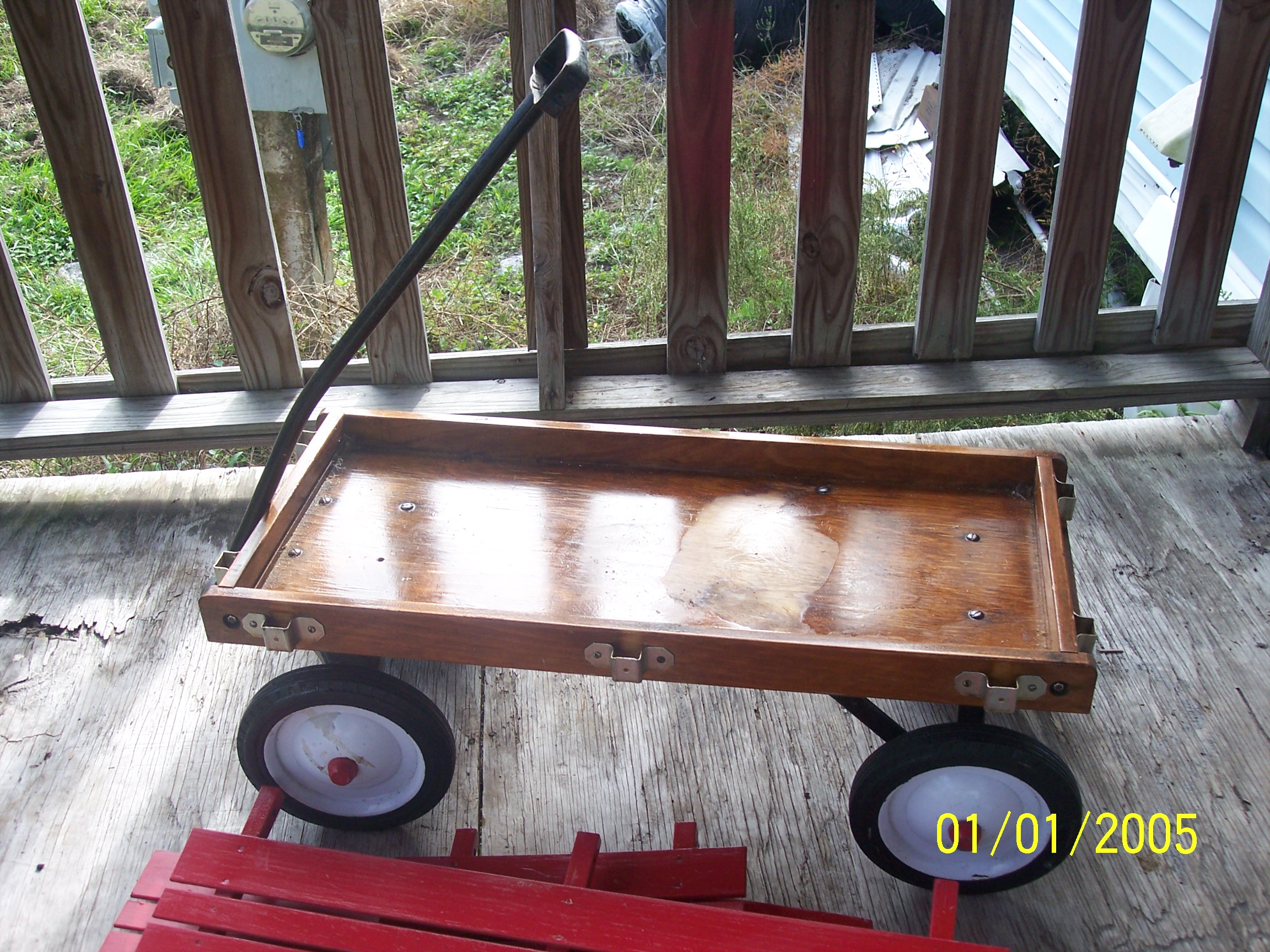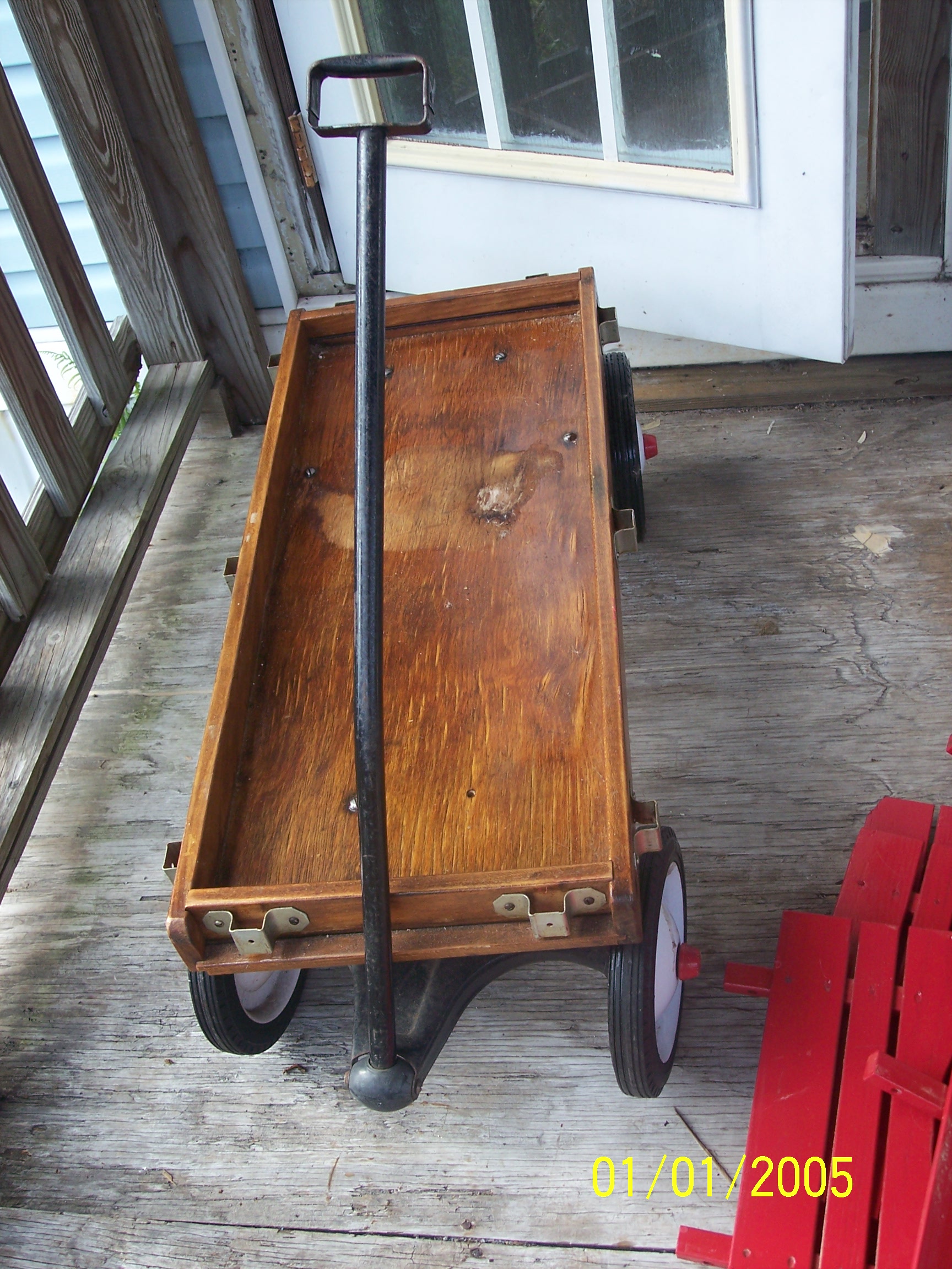 Re: 1930s wooden wagon with metal handle, removable side rails