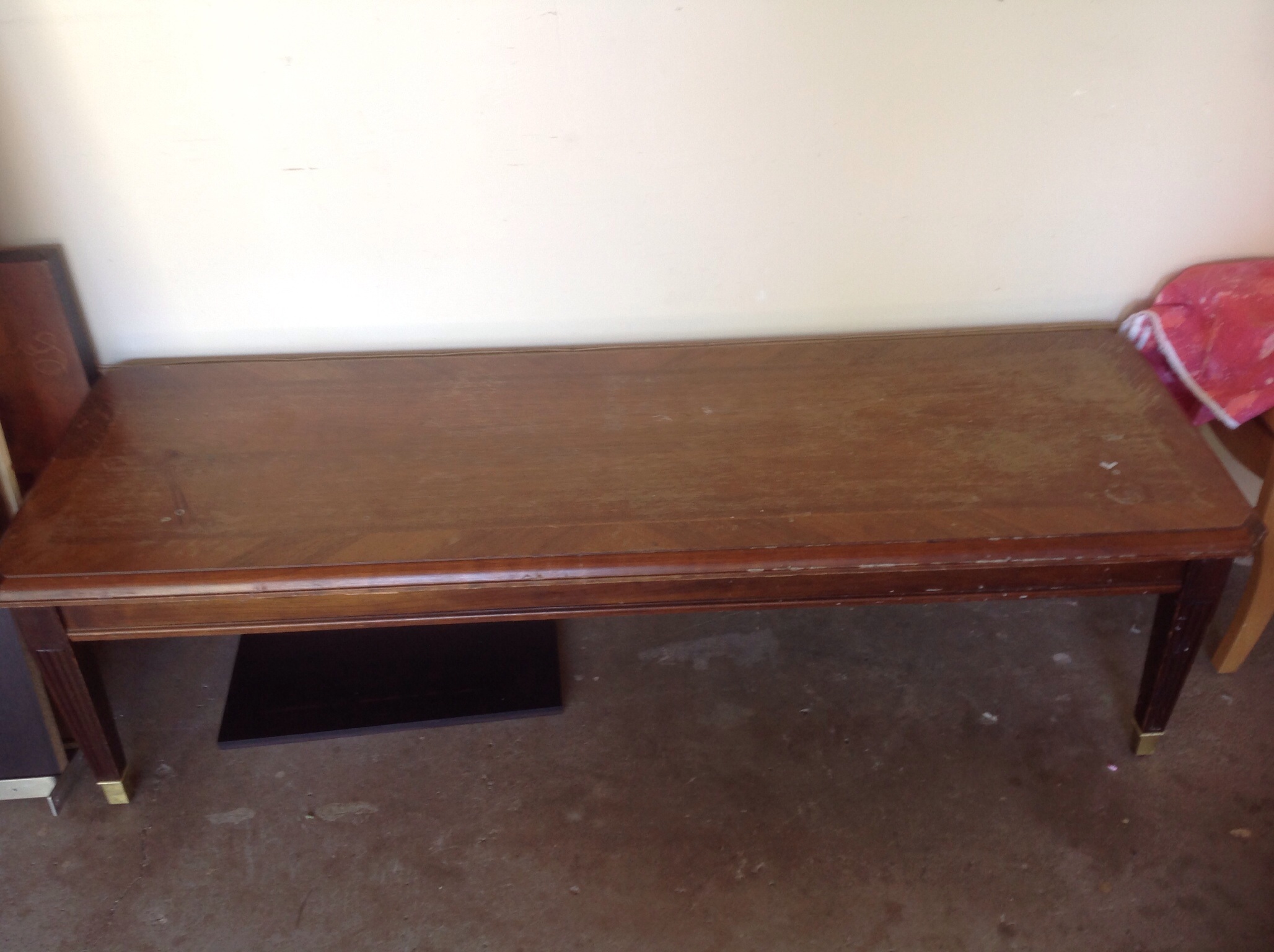 The table is 5 feet long 17 inches h 19 inches deep and has brass feet