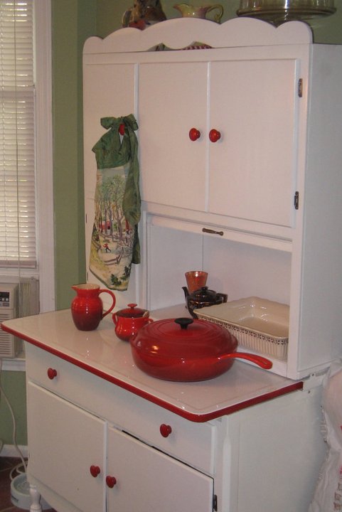 Hoosiers were hot items during the 1980's- 90's, but are now not near as sought after. They peaked in value for a really good one in natural oak finish in perfect condition at about $1800.00, the painted variety from the late 1920's were not near as sought after. Today a painted hoosier at auction might bring $300.00 on a good day.