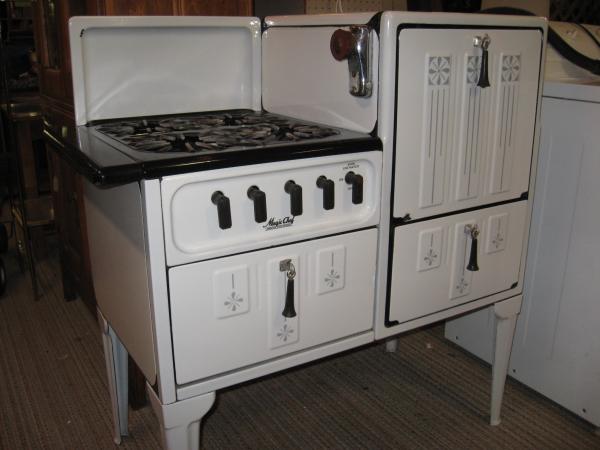 This is a working 1934 Magic Chef gas stove. I acquired it from an antiques dealer in the late '80's. He told me that it came out of an elderly lady's home in Tulsa, OK. He was under the impression that she had purchased the stove new in 1934. If so, I am only the second person to have owned it. This stove looks very nice; it has a couple of minor chips in the enamel. The interior has several spots of rust. Nothing on the stove has been modified; it is in its original state. As stated earlier, it does work-- I used it from time to time when my electricity went out and I could not use my electric oven. I am selling it now to make room in my home.