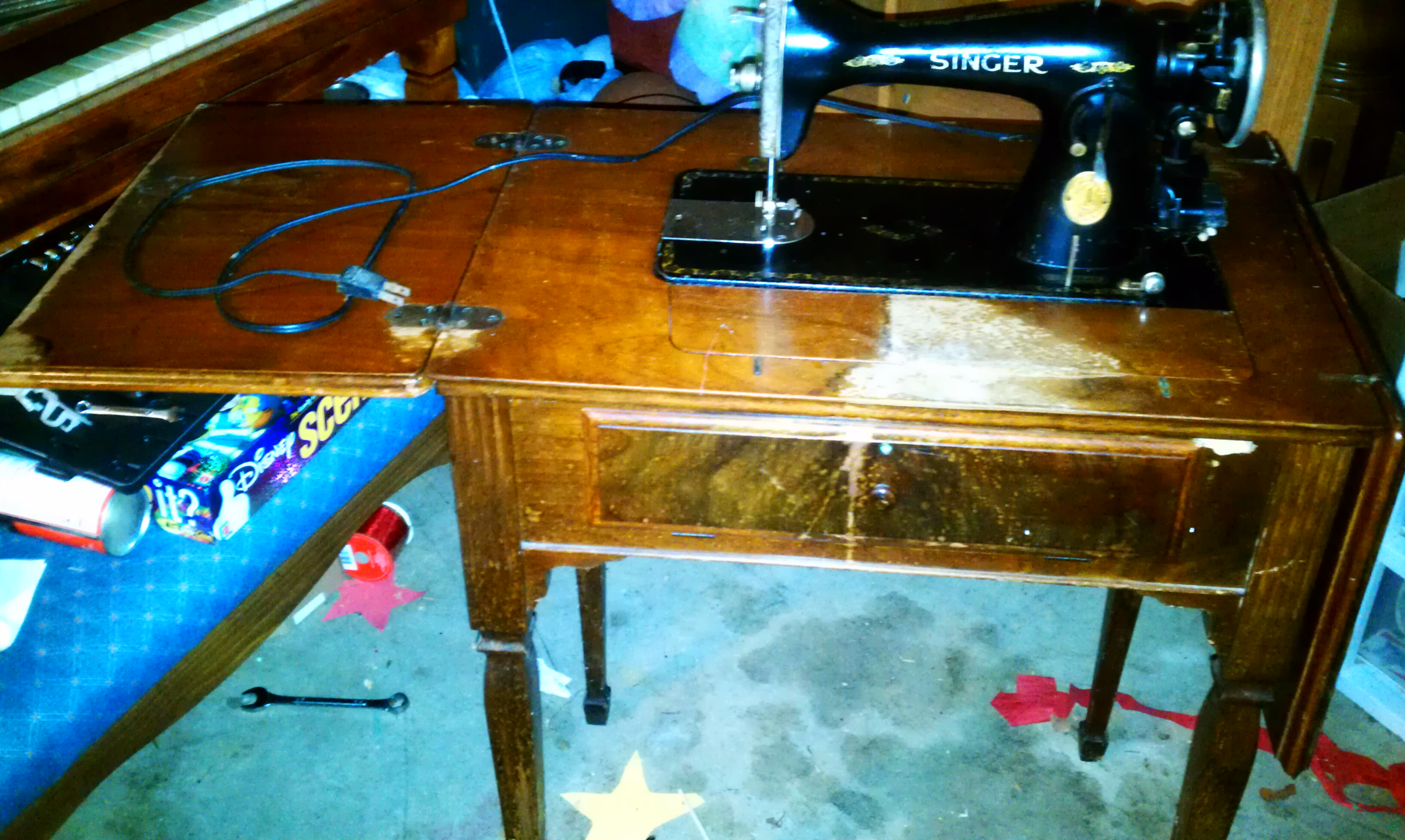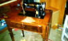 The is a wonderful 1934 Singer Electric Sewing Machine, that can be folded up to be a Wooden Desk when not in use.