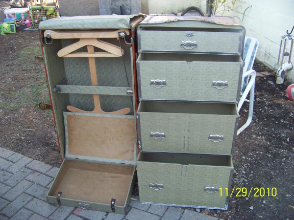 Tan Colored Horn Wardrobe/Trunk in great shape. Some scratches from moving from place to place I guess. Locks both inside and out and I have the ORGINAL keys. Don't want to sell it but will never have a spacious place to admire it.