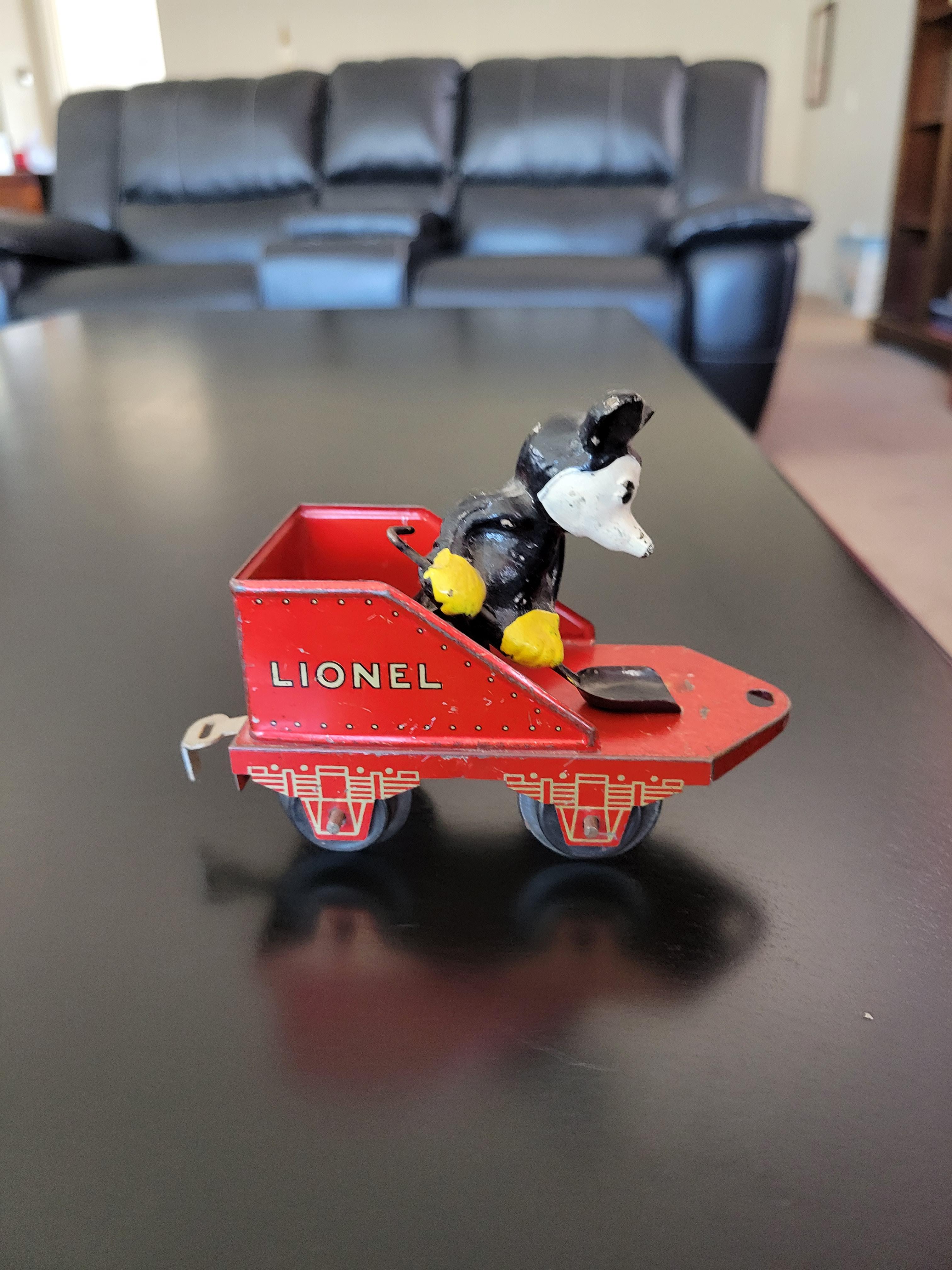 I have the stoker car only from the 1935 Mickey Mouse Circus Train set. It is in good condition.