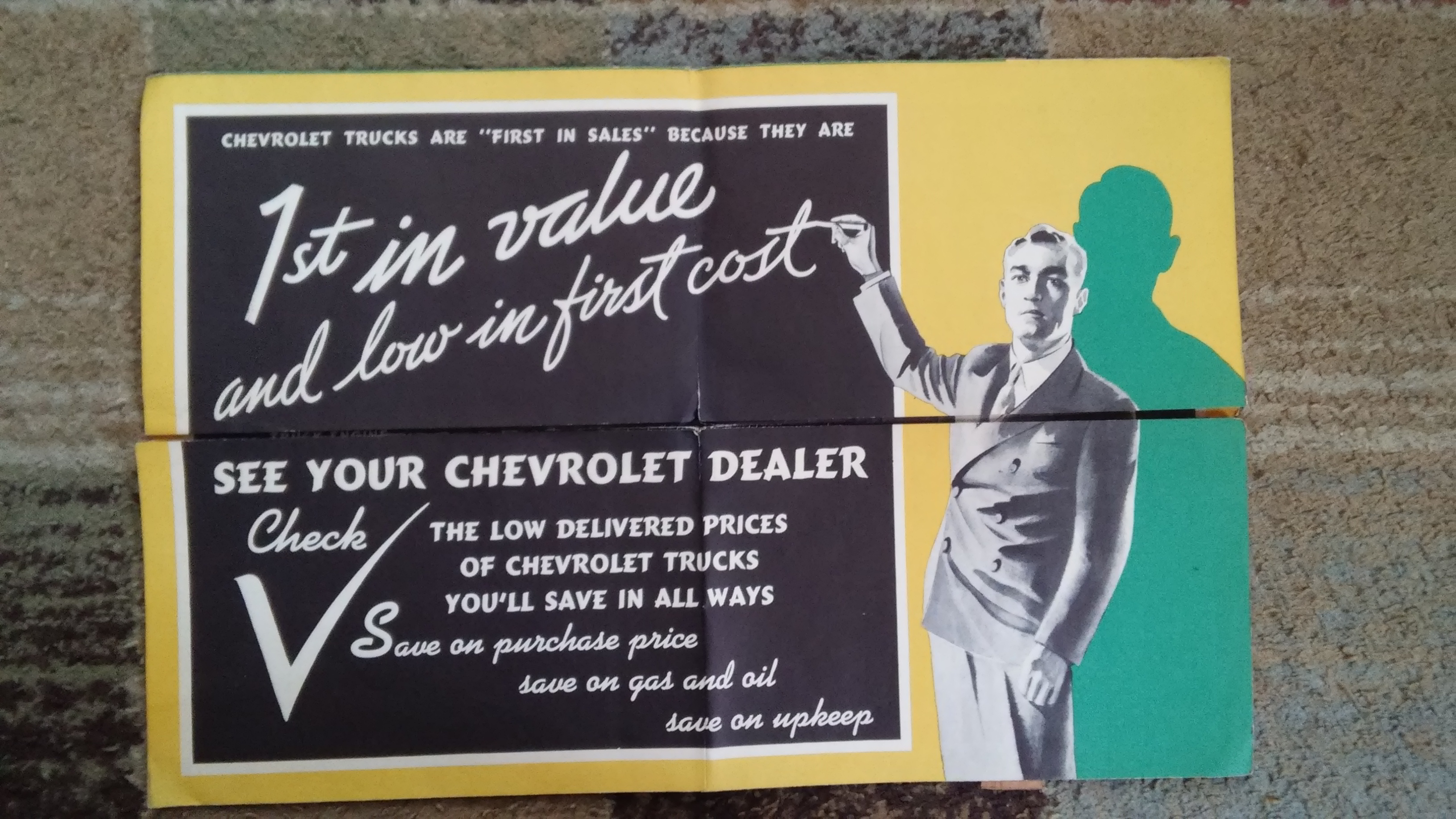 1938 Chevrolet truck advertisement. this is a very rare piece as you will see in the last photo I submitted it to the GM Heritage group and they do not have a copy of this piece.