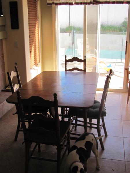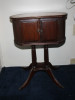 1938 Dining set (wall buffet not pictured). Drop leaf table will fold down to seat 2. With extensions added it can seat 8-10. Buffet has a drawer and cupboards.