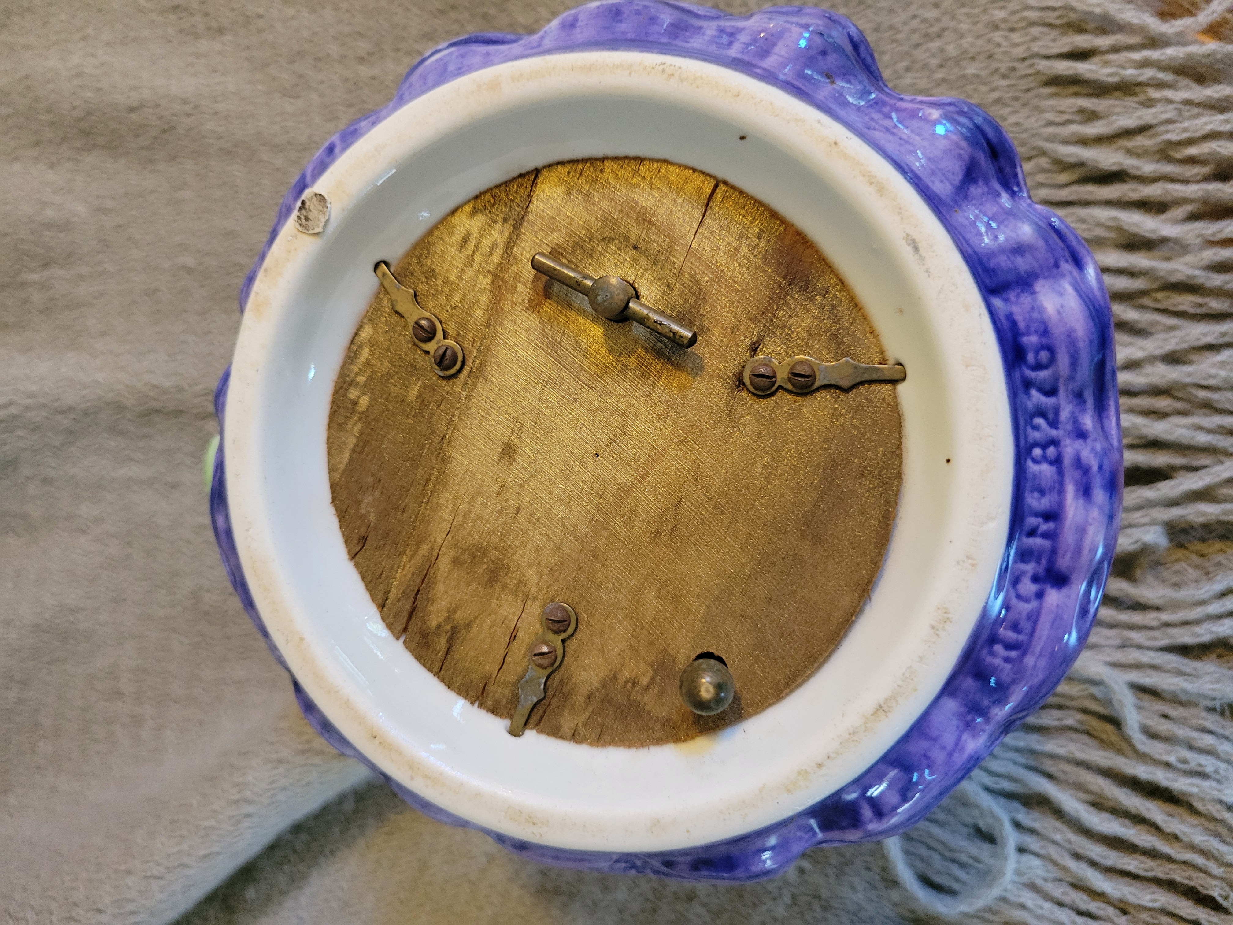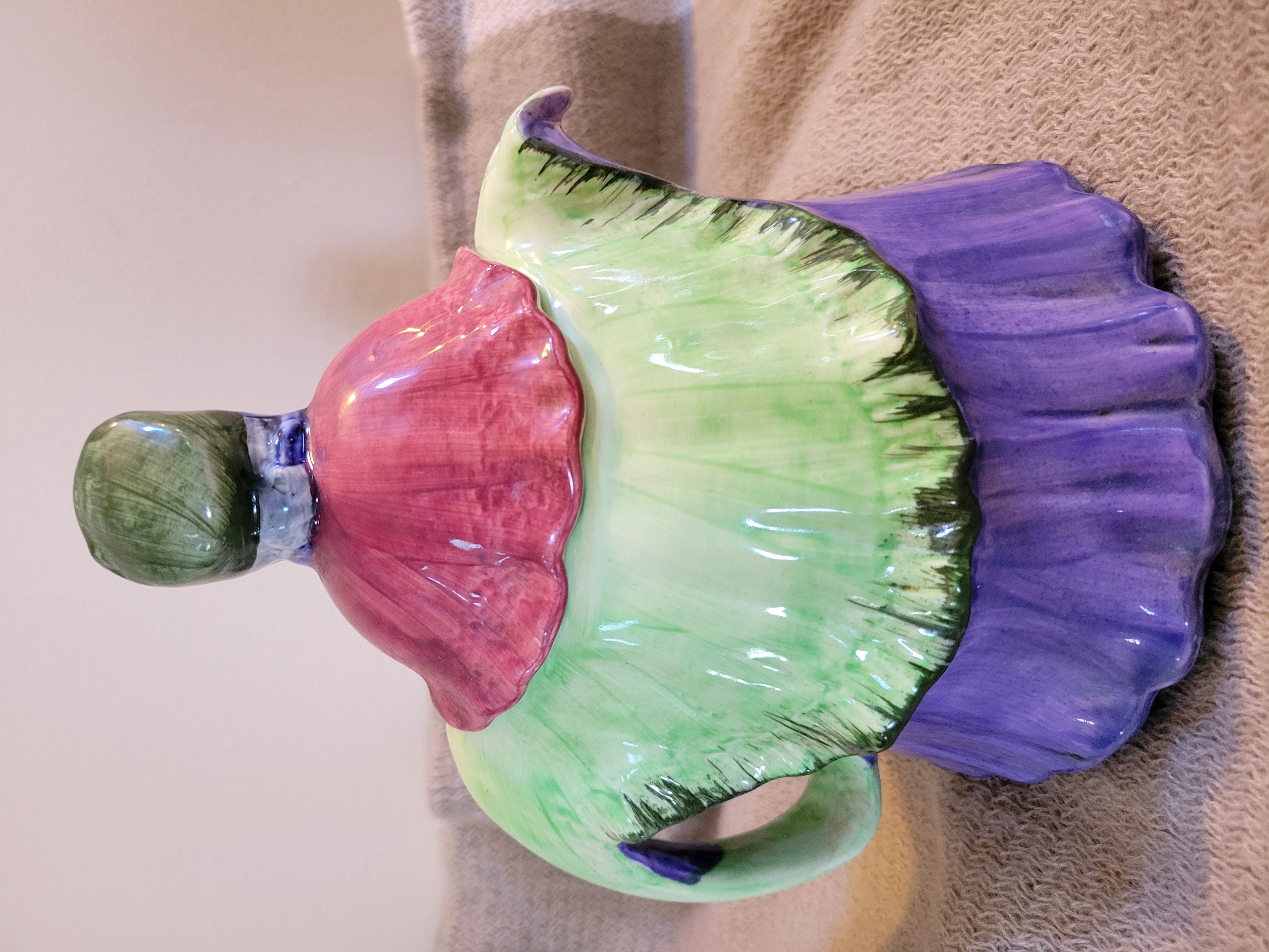 1938 English Grandma or "Little Old Lady" Musical Figural Ceramic Teapot. Made by Staffordshire. Dating to c. 1938. Materials: Ceramic. Estimated value: $100 – $150. Condition: Very Good. The market for Staffordshire ceramics is currently stable, with moderate demand for unique and well-preserved pieces.