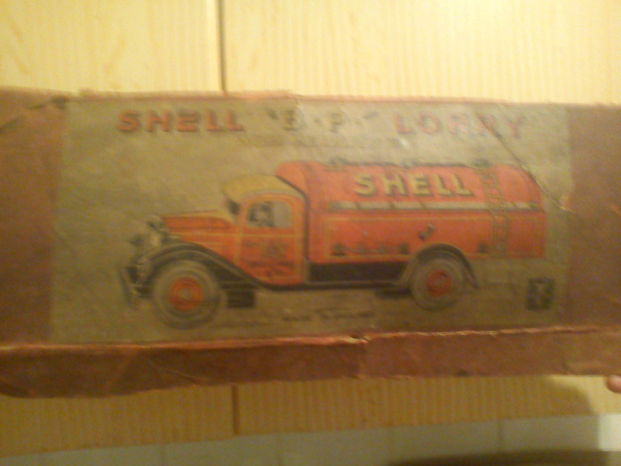 This is a 1938 tin wind up Shell B P Lorry with box.