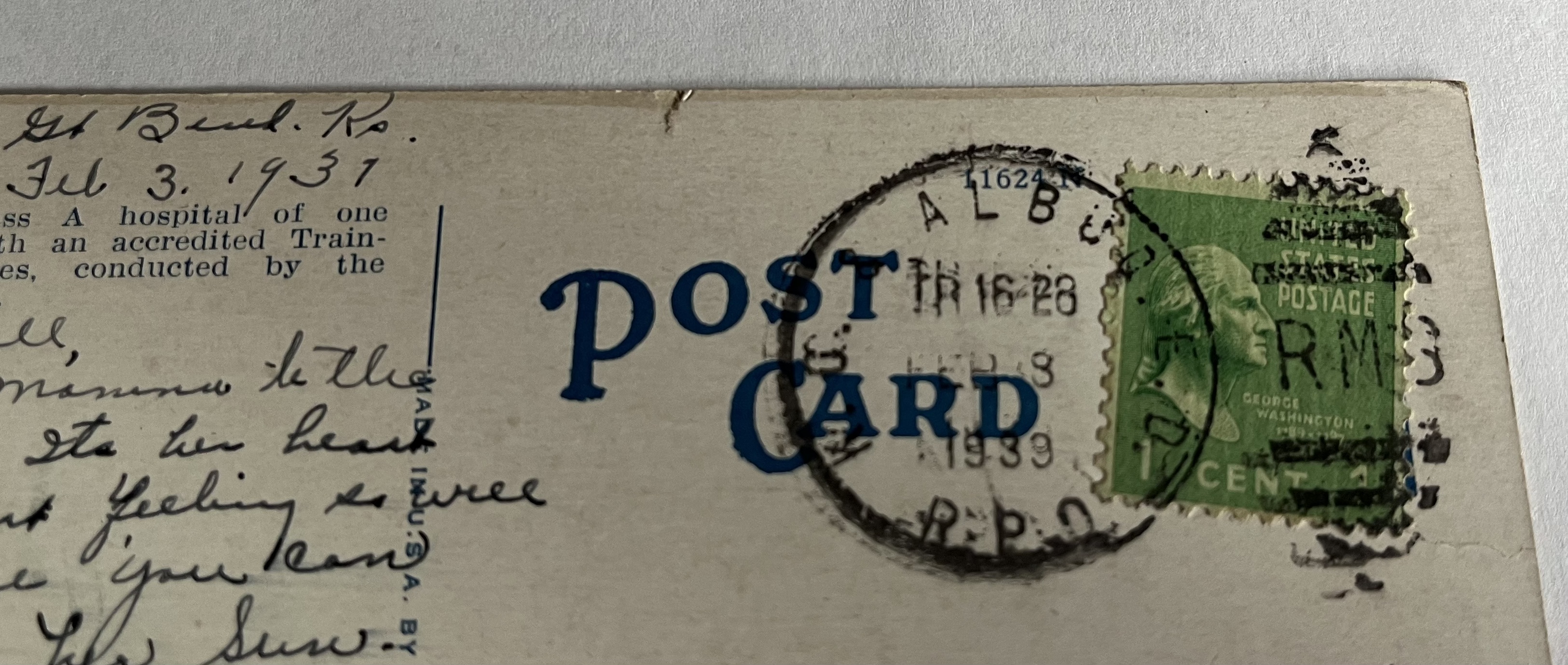Interesting Facts: The 1 cent George Washington stamp was issued in 1932 as part of the Presidential series, making it a popular collectible among philatelists. The postcard not only serves as a communication tool but also as a piece of art that captures the essence of its time.