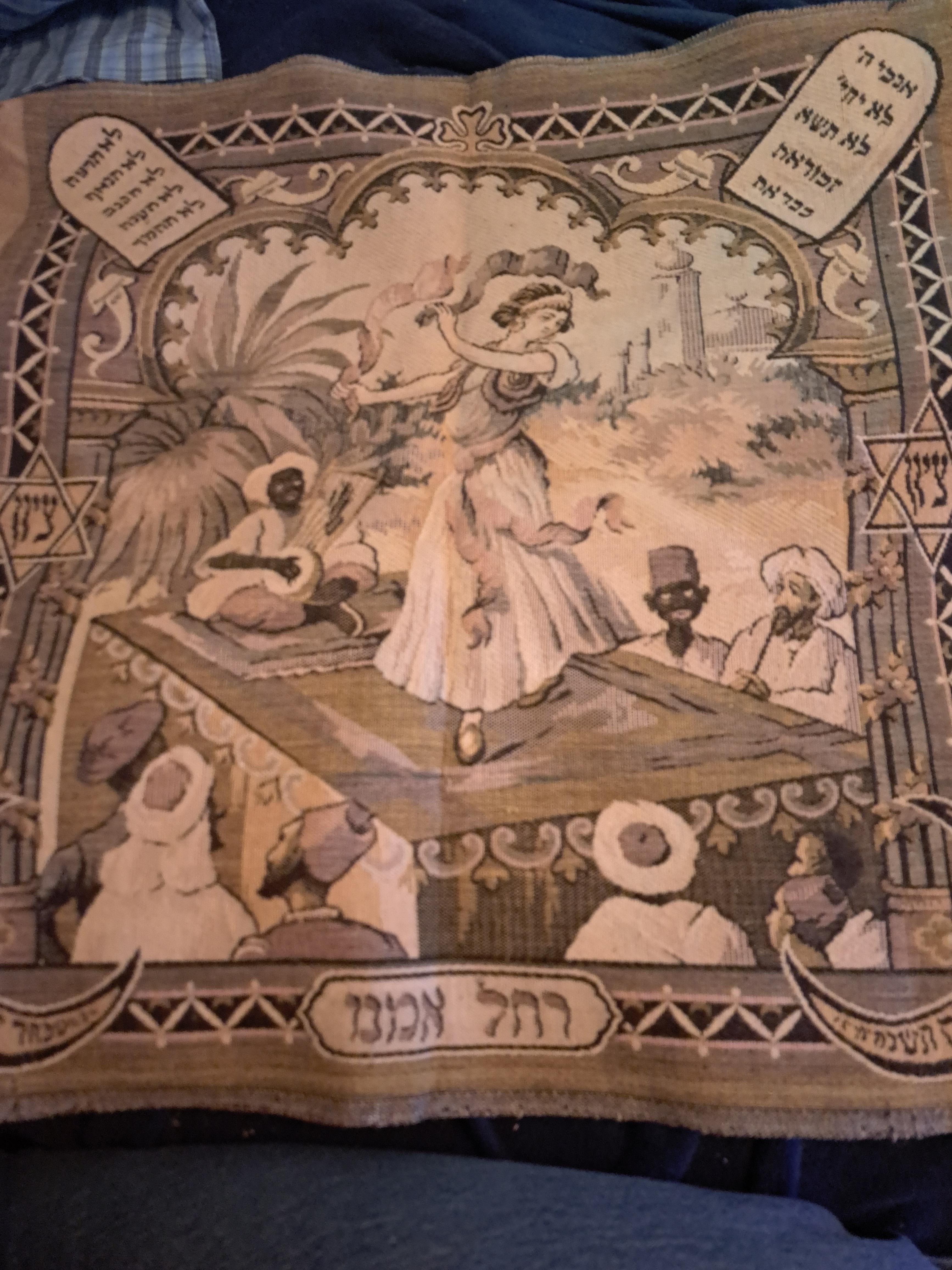 I can't find anything about the tapestry. Some of the words translate to Rachel our Mothher.