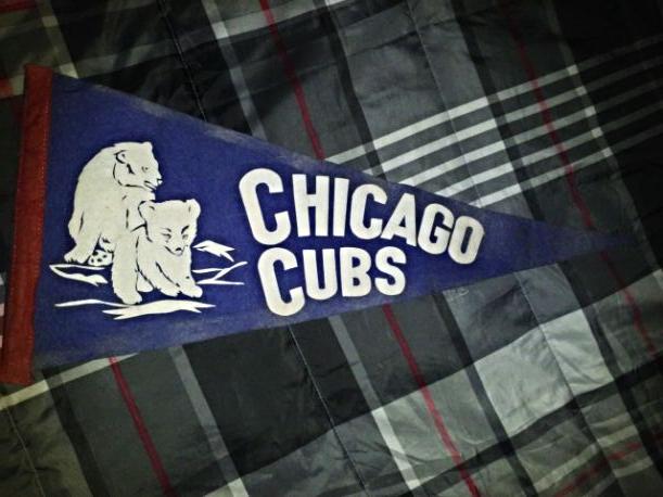 I own an old Chicago Cubs pennant with good color and slight dust/fading along the edges of the pennant. I've never tried to clean the pennant for fear of ruining it, but, I believe the edges can be cleaned properly and made to look nicer again. Any thoughts on an exact age/date of the pennant? Approximate worth if the Cubs win the World Series this year/worth without a WS win?