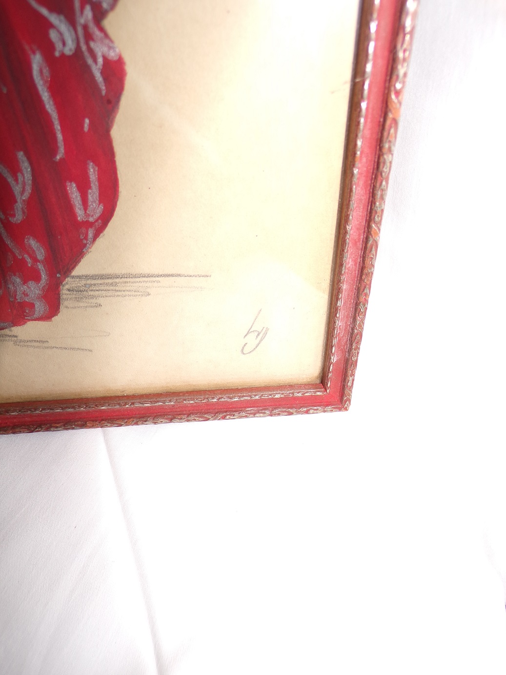 I cannot make out the Initials on the bottom right hand corner. You can tell the picture was a pencil and ink sketch that was colorized and highlighted with a shining silver paint? I am curious what people might think this is and if it has any real value. I am looking to sell it.