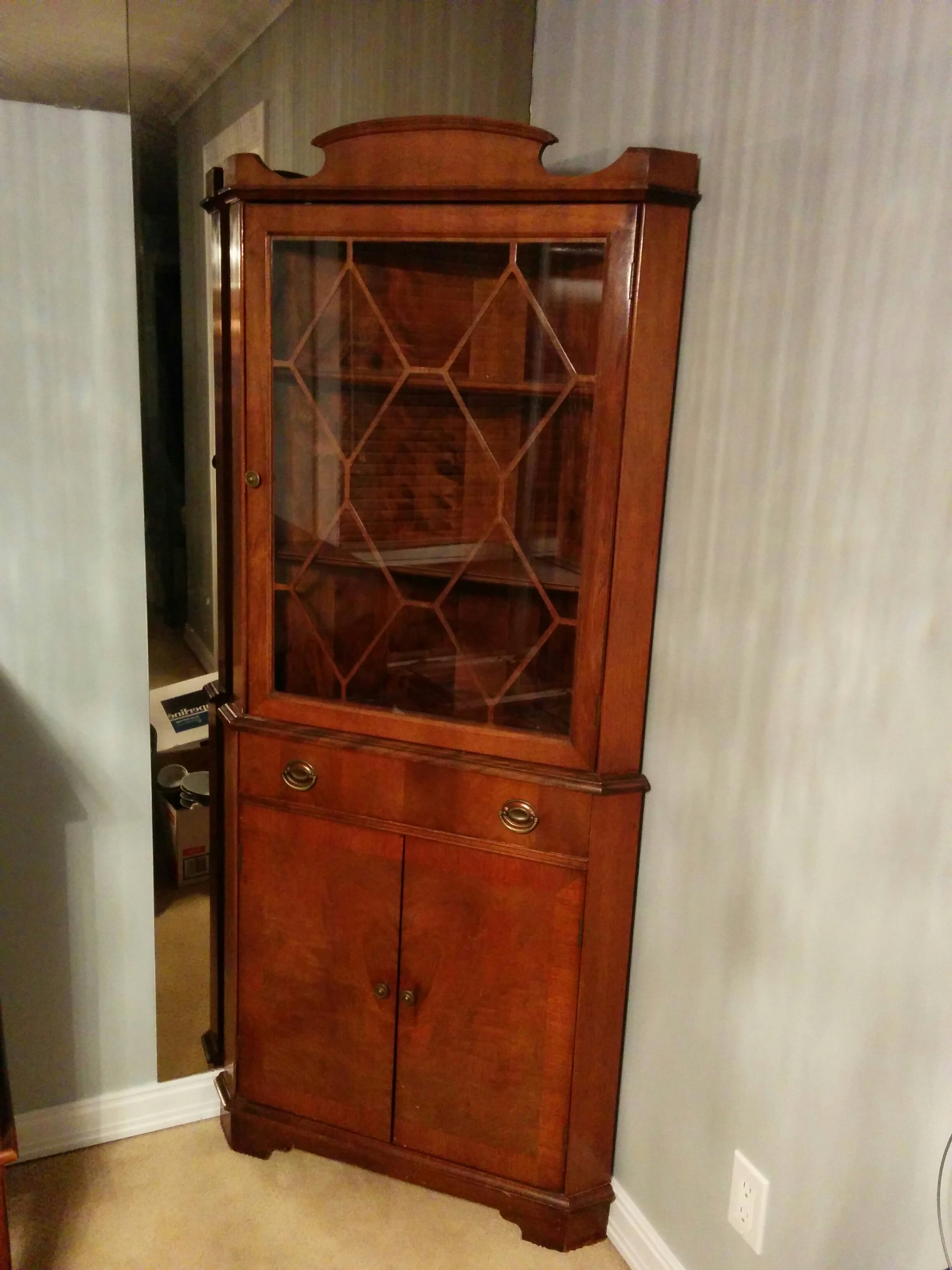 This very well kept Honderich Corner China Cabinet has been in my family for as long as I can remember, (and I'm now in my late 50's). I'm pretty sure it was bought new by grandparents.