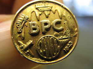 The ring is 10k gold (readable on bottom. B.P.C and Canol are very distinct on it 1943 and an airplane, truck, tank or treaded drilling machine??? and an oil well are on it. Upon closer inspection of other more pristine items (pins) a boat is visible on them, but that is worn off on my ring from some smoothing of the gold.