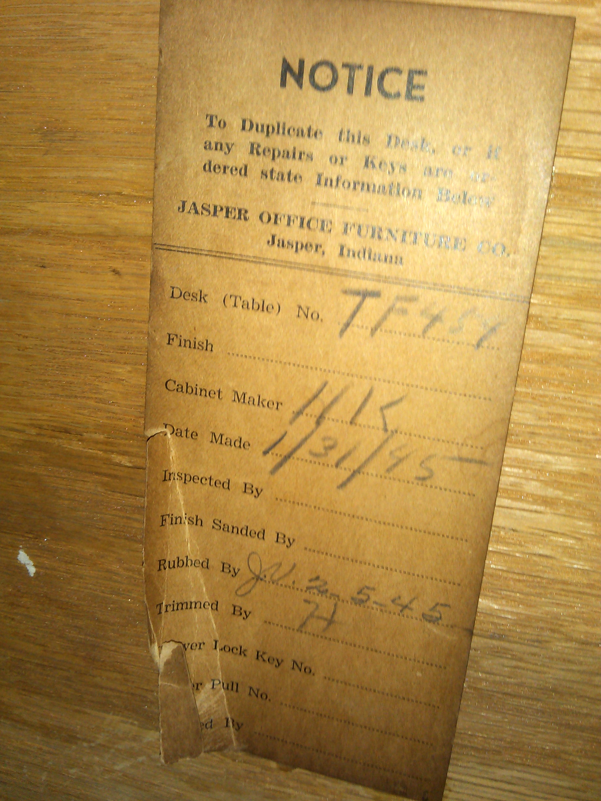 Jasper Office Furniture Company, Jasper, Indiana- Sticker under drawer indicates made Jan. 31, 1945. Six drawers, middle of the top section comes off. In great condition.