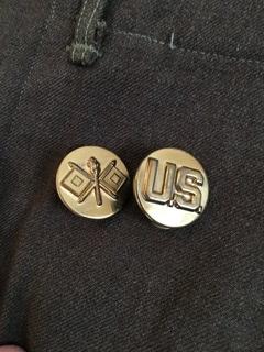 1945 world war 2 era US military uniform set. Including hat, two pairs of slacks, one uniform jacket, two rank pins (I believe), a water canteen with a container to boil/cook over fire and the duffle bag. All with a time stamp of 1945. Amazing condition, small tear in the inside of the jacket where the armpit would be.