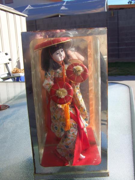 This doll is in a clear plastic sealed case with a hand written note taped to the back in my grandmothers handwriting saying "Stanley brought this back from Japan in 1946". Stanley is my grandfather whom I inherited this from.